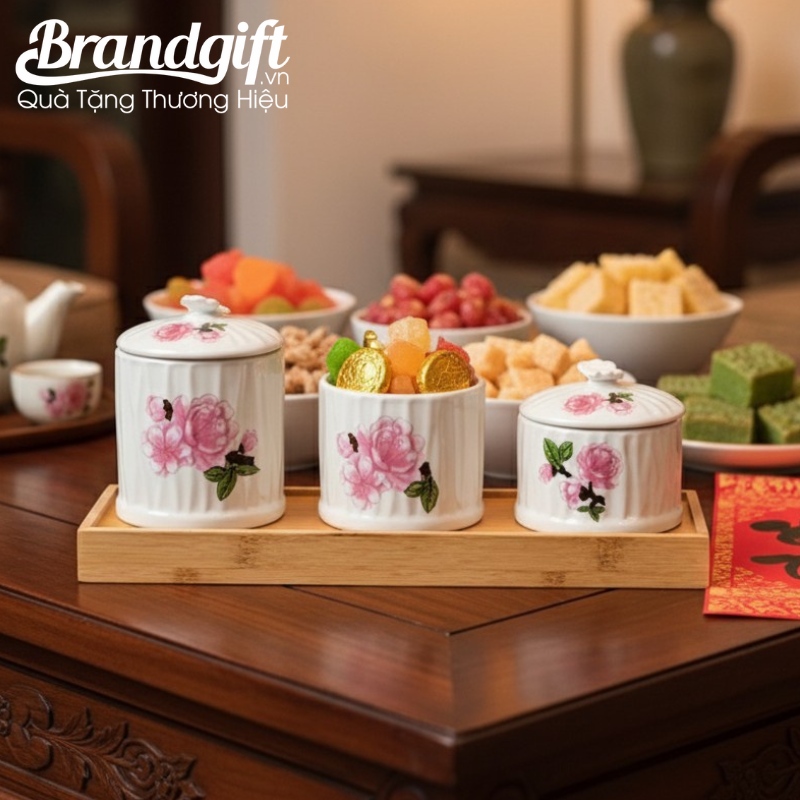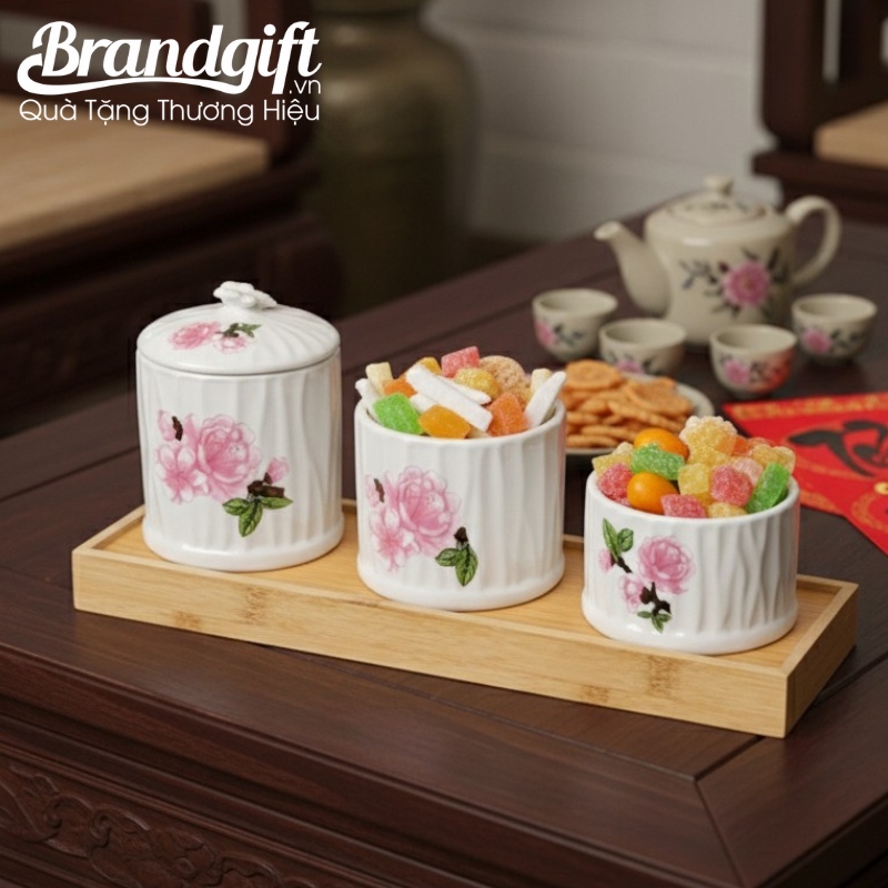 Tất cả sản phẩm tại Brandgift đều được tuyển chọn kỹ lưỡng và không qua trung gian nên luôn có giá thành cạnh tranh so với thị trường. Ngoài khay mứt, chúng tôi còn cung cấp các sản phẩm quà tặng gốm sứ khác bao gồm ly, ấm, chén, bình hút lộc, lọ hoa,…