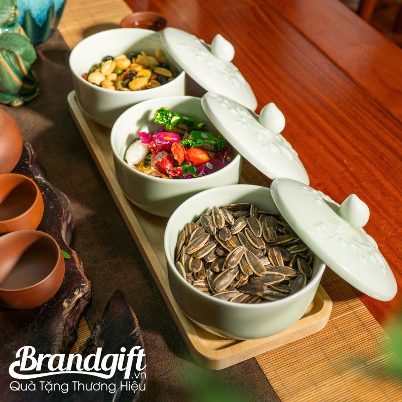 BrandGift chuyên phân phối và cung cấp khay mứt số lượng lớn in logo làm quà tặng Tết