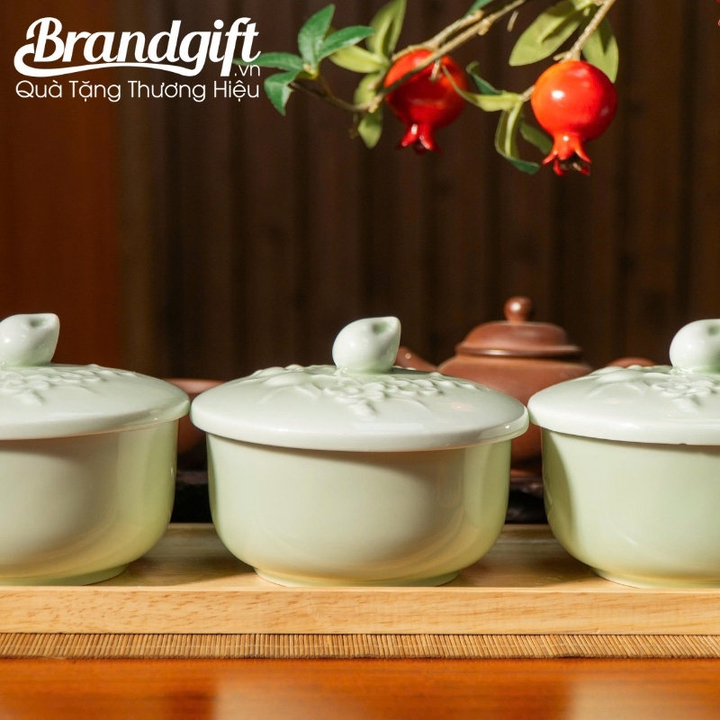 Việc trao tặng bộ hũ mứt sứ in logo quà tặng này là cách doanh nghiệp bạn tạo dựng và gia tăng mối quan hệ gắn kết với các đối tác, khách hàng thân thiết và toàn thể người lao động, công nhân viên. Dịch vụ in logo cùng thông điệp tri ân lên sản phẩm của BrandGift là giải pháp tối ưu giúp doanh nghiệp gửi gắm lời tri ân sâu sắc, khẳng định gu thẩm mỹ cao qua từng món quà.