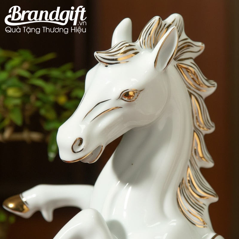 Tượng bạch mã quà tặng in logo vẽ vàng kim 29x30cm TLV-01 là vật phẩm phong thủy đẳng cấp, biểu trưng cho sức mạnh, sự dũng mãnh và khí chất vương giả. Tượng ngựa được tạo hình trong tư thế phi nước đại (Mã Đáo Thành Công), mang ý nghĩa thăng tiến vượt bậc, hưng thịnh và bình an, là lời chúc ý nghĩa trong kinh doanh và cuộc sống.