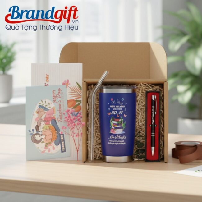 Bộ quà tặng cốc giữ nhiệt và bút ký GS-03 là giải pháp tri ân ý nghĩa và tinh tế, được Công ty quà tặng Brandgift thiết kế đặc biệt dành riêng cho dịp 20/11.