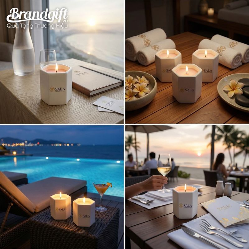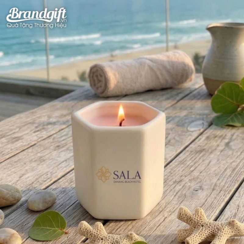 Với thiết kế hình khối lục giác độc đáo cùng chất men sứ trắng tinh khôi, đây là dòng sản phẩm quà tặng đặc thù dành riêng cho các không gian nghỉ dưỡng sang trọng, giúp lan tỏa hương thơm và khẳng định đẳng cấp thương hiệu.