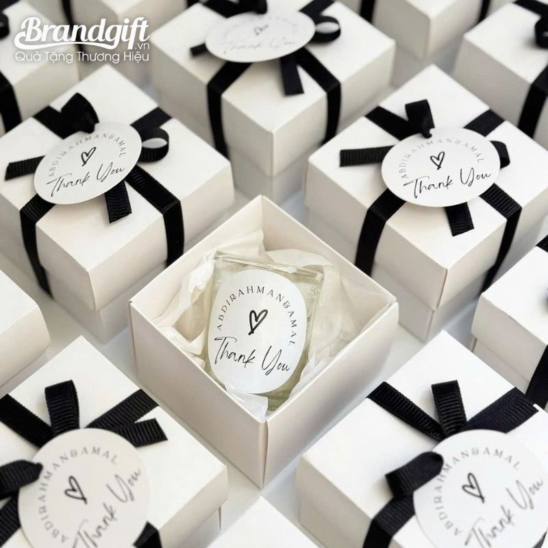 - Tag đính kèm: In trên thẻ treo ngoài hộp quà để tăng thêm phần trang trọng.