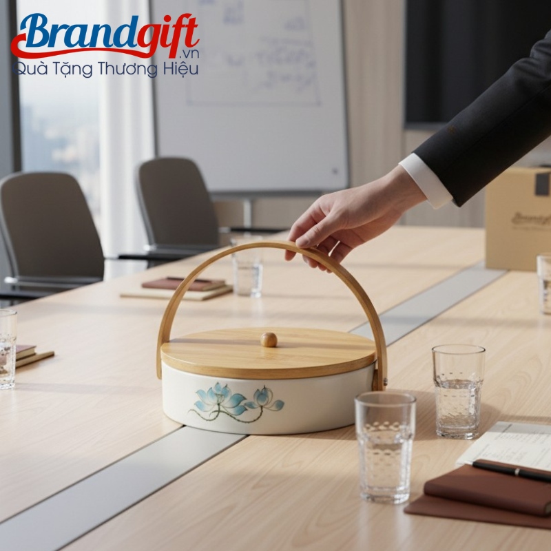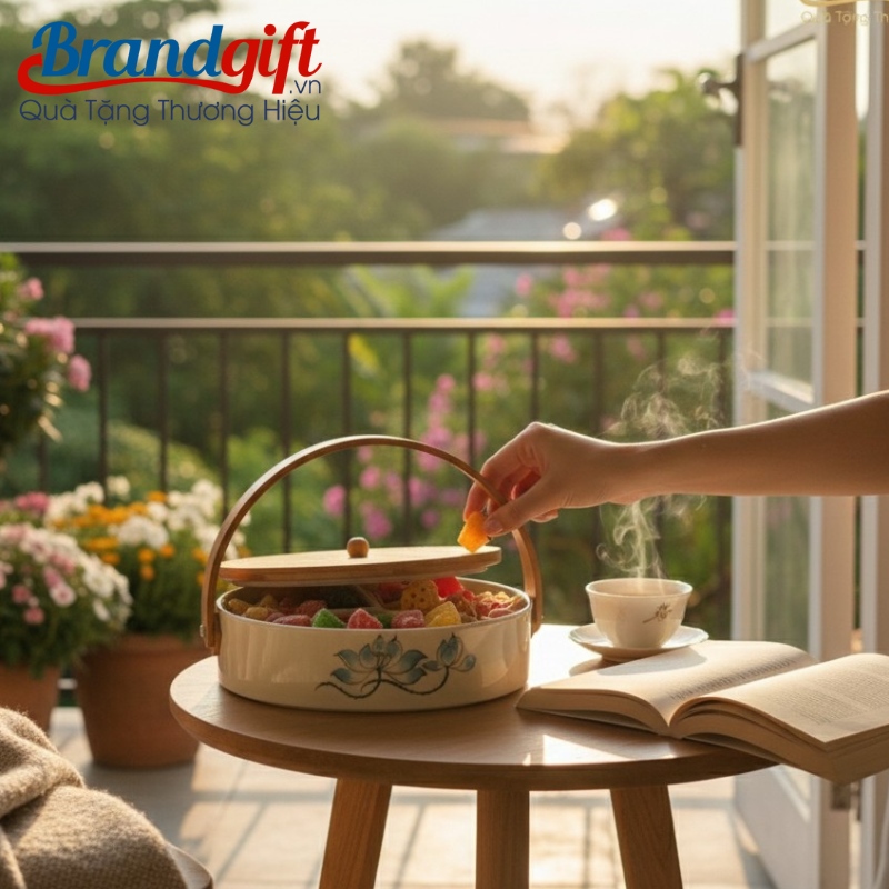 Việc trao tặng khay mứt sứ in logo quà tặng này là một hành động tri ân sâu sắc, giúp doanh nghiệp gia tăng mối quan hệ gắn kết với các đối tác, khách hàng thân thiết. Logo doanh nghiệp cùng thông điệp tri ân in ấn sắc nét trên khay mứt chính là công cụ quảng bá tinh tế, hiện diện thường xuyên trong không gian ấm cúng của mỗi gia đình, củng cố lòng trung thành với thương hiệu.