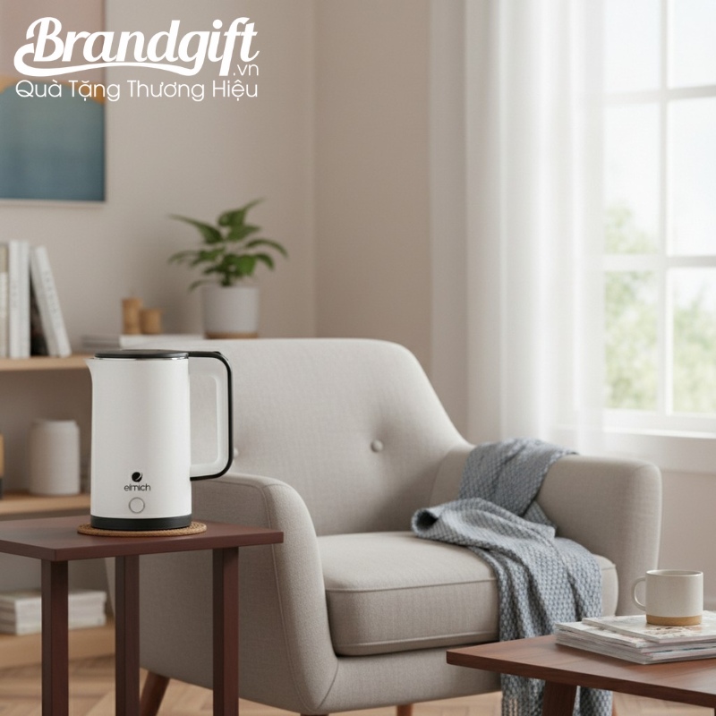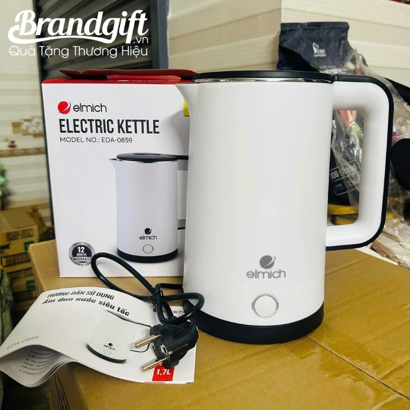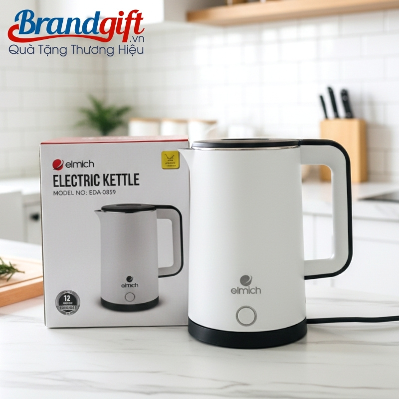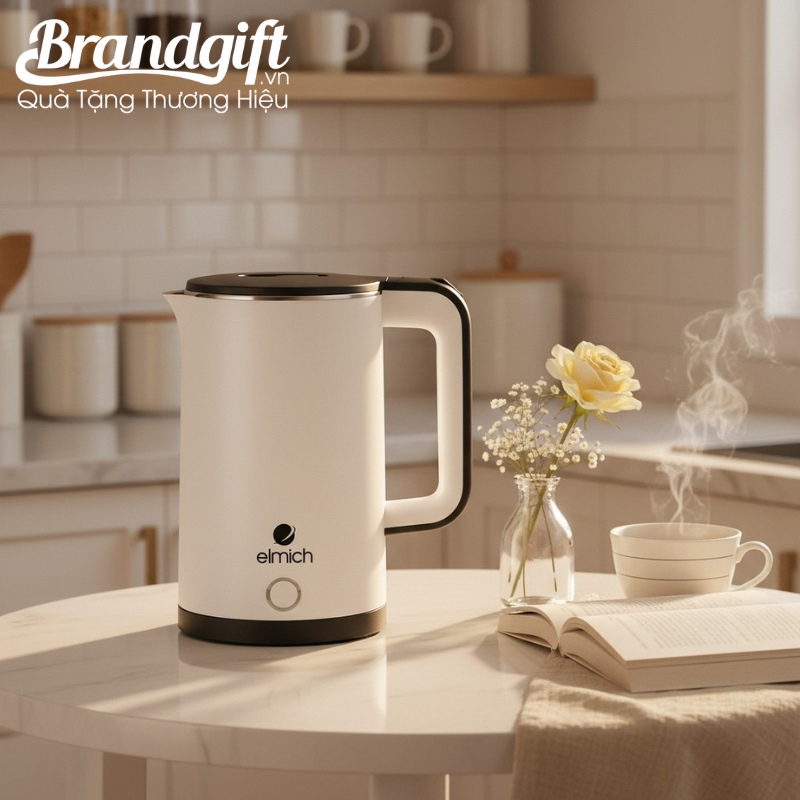 Ấm đun nước siêu tốc Elmich in logo làm quà tặng màu trắng 1.7L AST-02 là giải pháp quà tặng gia dụng hữu ích, đề cao sự bền bỉ, giá trị sử dụng hàng ngày và thiết kế thanh lịch, phù hợp mọi không gian. Món quà giúp doanh nghiệp gửi gắm sự chăm sóc chân thành đến người nhận.