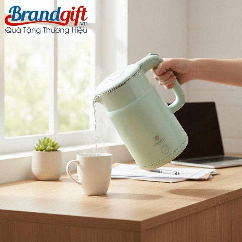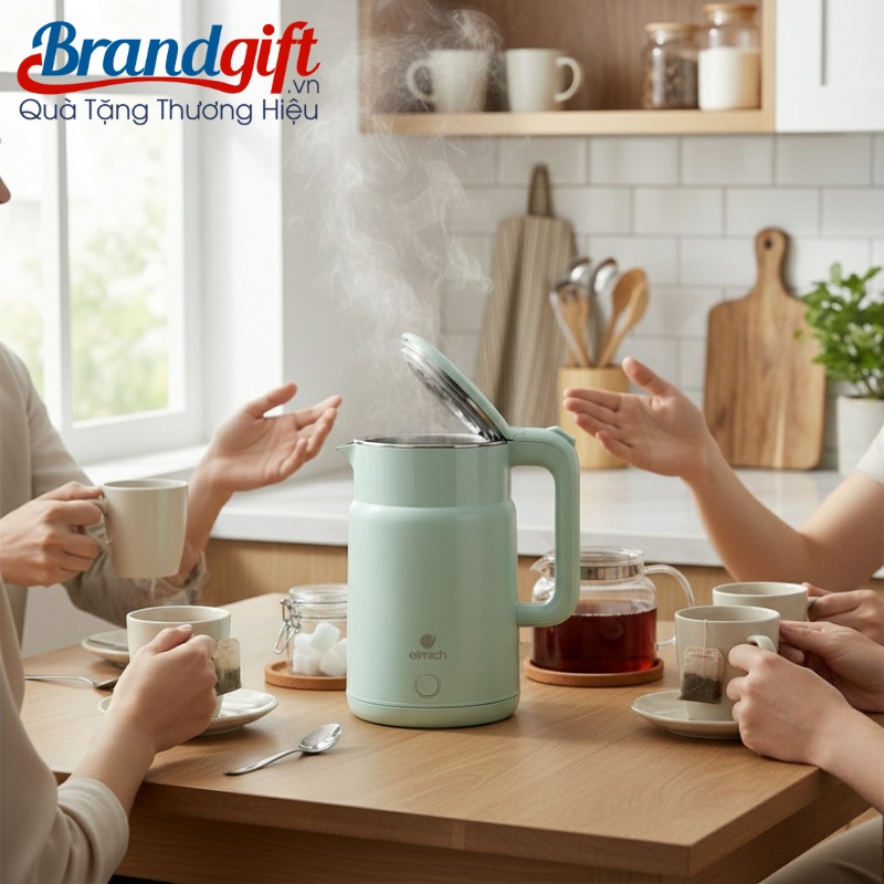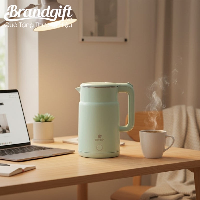 Ấm đun nước siêu tốc Elmich in logo quà tặng màu xanh mint 1700ml AST-01 là một món quà gia dụng đầy tiện ích, đồng hành cùng nhịp sống hiện đại. Trao tặng ấm siêu tốc in logo quà tặng giúp doanh nghiệp gửi trao lời chúc sức khỏe, thể hiện sự quan tâm chăm sóc đến những khoảnh khắc thường nhật của người nhận.