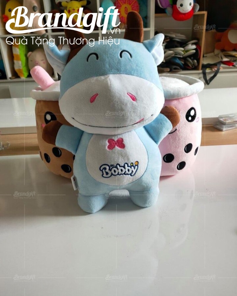 Gấu bông bò sữa là mẫu thiết kế gấu bông thành linh vật đặc trưng của các hãng sữa hiện nay.