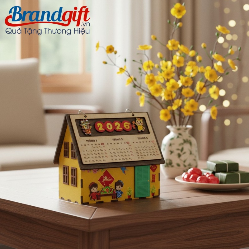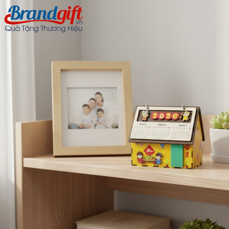 Mẫu lịch để bàn quà tặng in logo này là giải pháp quà tặng sáng tạo, vừa thiết thực vừa mang tính thẩm mỹ cao, rất phù hợp để doanh nghiệp dành tặng nhân viên, khách hàng trong dịp Tết 2026. Dịch vụ khắc logo của BrandGift sẽ biến ngôi nhà nhỏ này thành đại sứ thương hiệu thân thiện, hiện diện mỗi ngày trên bàn làm việc của người nhận.