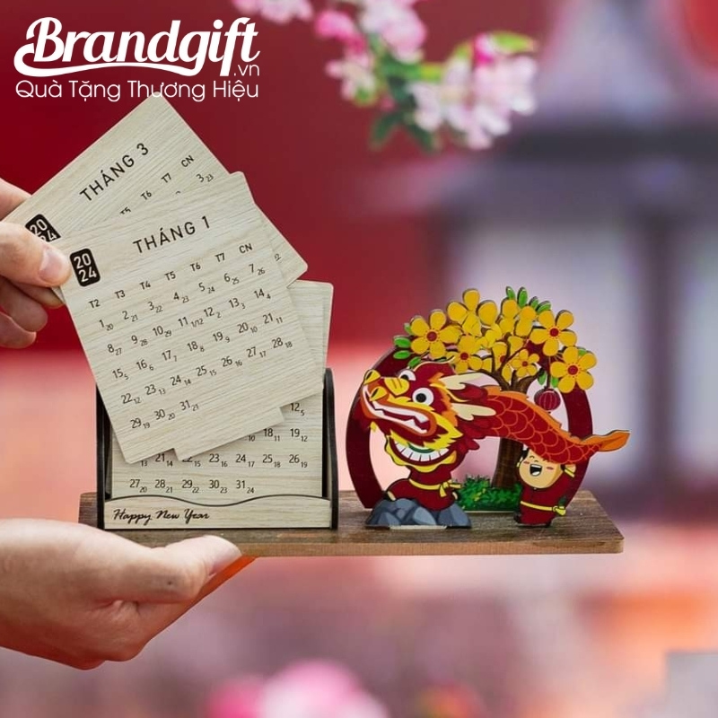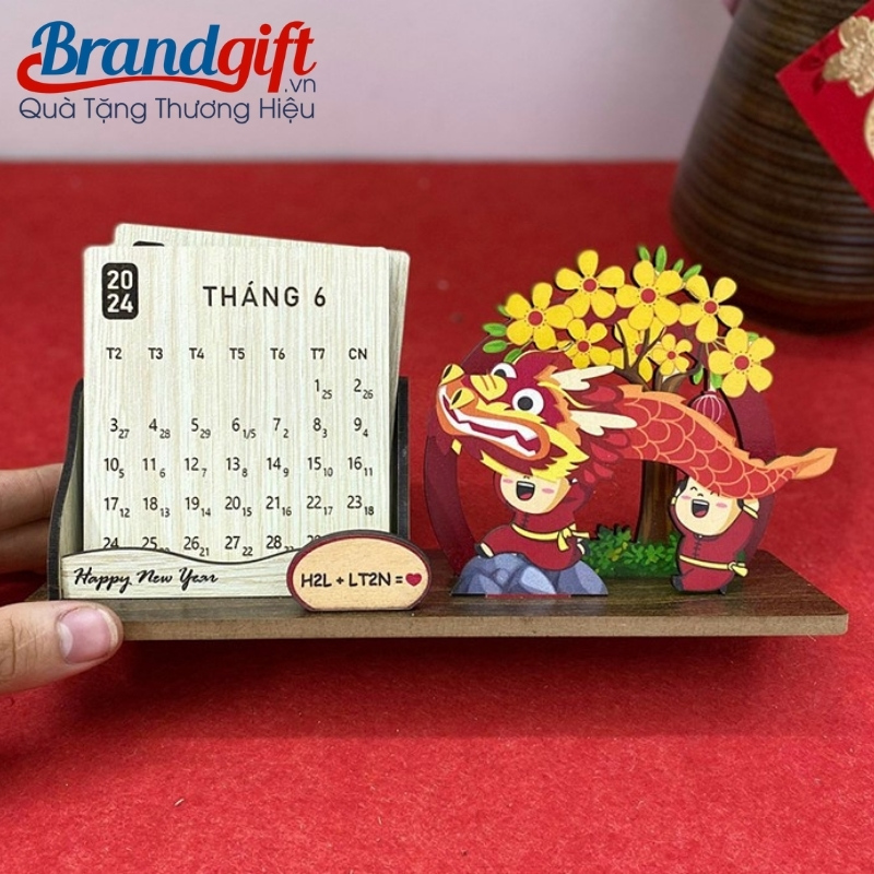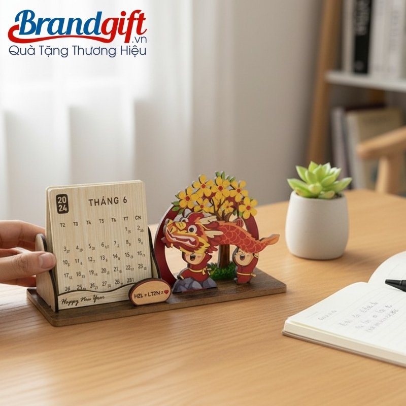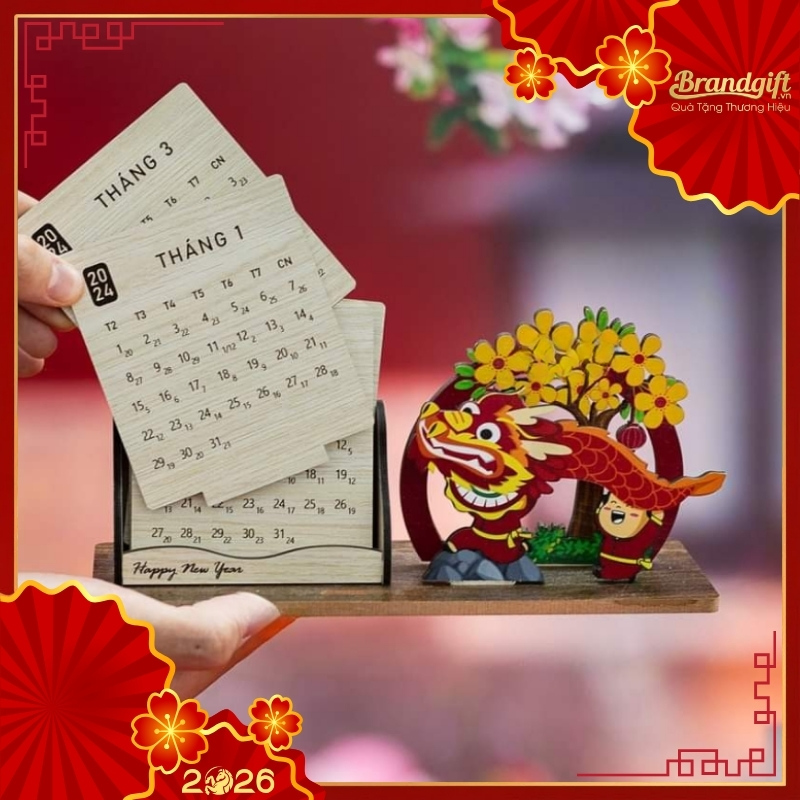 Trong không khí rộn ràng của những ngày giáp Tết Ngọ 2026, mẫu lịch gỗ để bàn in logo làm quà tặng Tết 2026 họa tiết múa lân LT-08 là tặng phẩm mang đến sự vui tươi và nguồn năng lượng tích cực. Hình ảnh múa lân được khắc tỉ mỉ tái hiện nét văn hóa đặc trưng của Việt Nam, đồng thời là biểu tượng cho sự may mắn, thịnh vượng và một khởi đầu đầy khí thế.