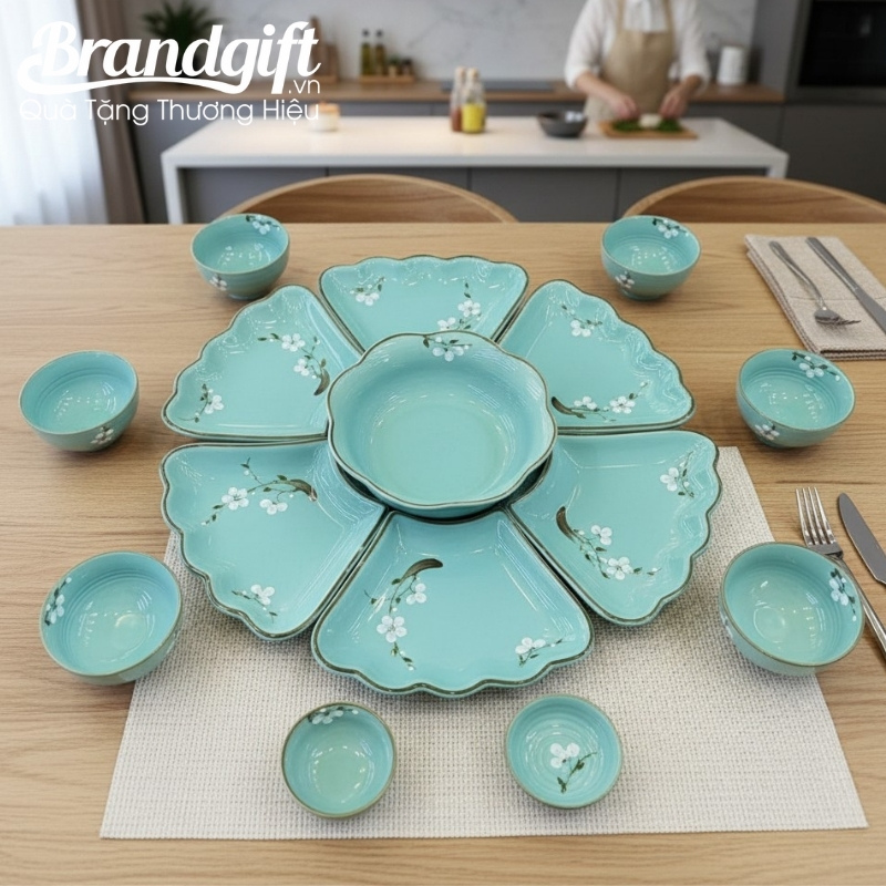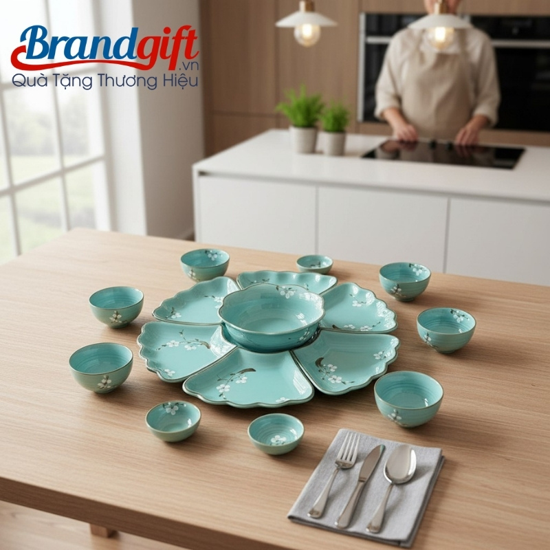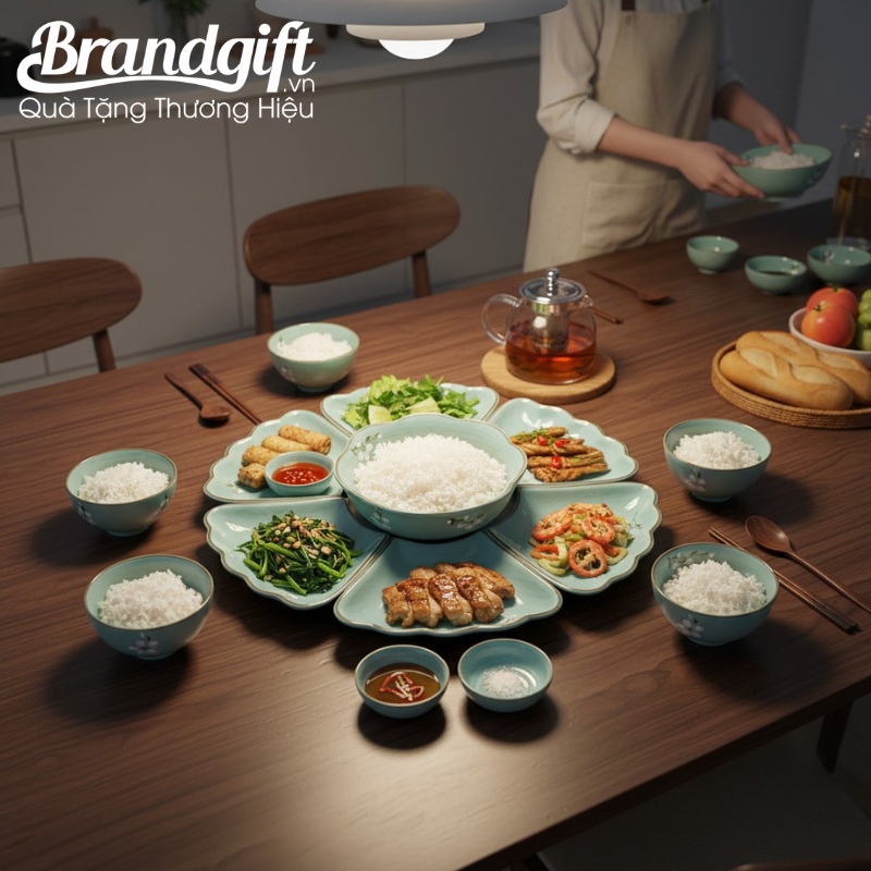 Tặng bộ bát đĩa gốm sứ in logo này là cách doanh nghiệp thể hiện sự trân trọng đến từng bữa ăn, sức khỏe của người nhận. Đồng thời, món quà này gửi gắm lời chúc về một năm mới vạn sự như ý, tươi sáng như ngọc, giúp gắn kết mối quan hệ với các đối tác, khách hàng quan trọng.