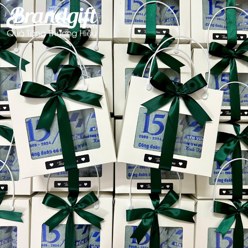 Đối với công ty, doanh nghiệp lựa chọn khăn thêu logo làm quà tặng, chúng tôi sẽ cung cấp thêm các hộp giấy đựng khăn tinh tế, gọn gàng, giúp món quà tặng của bạn trông thẩm mỹ và chỉn chu nhất.