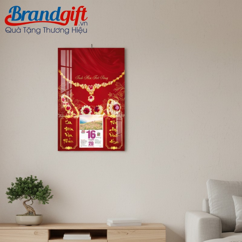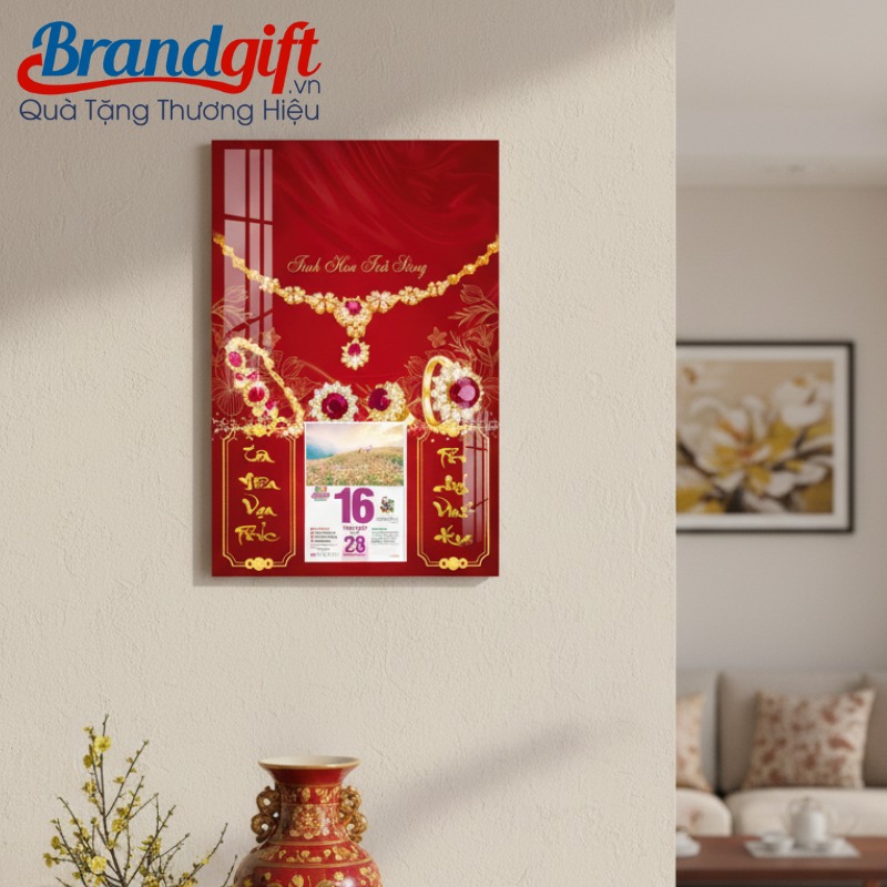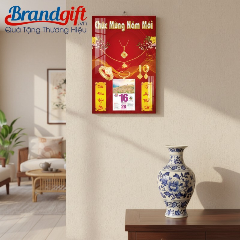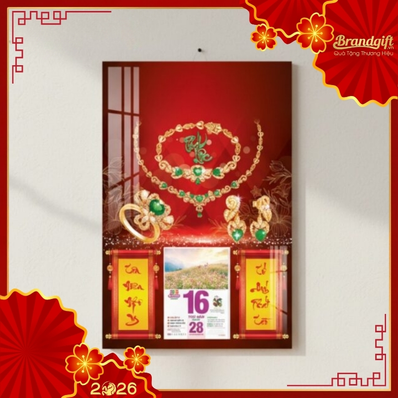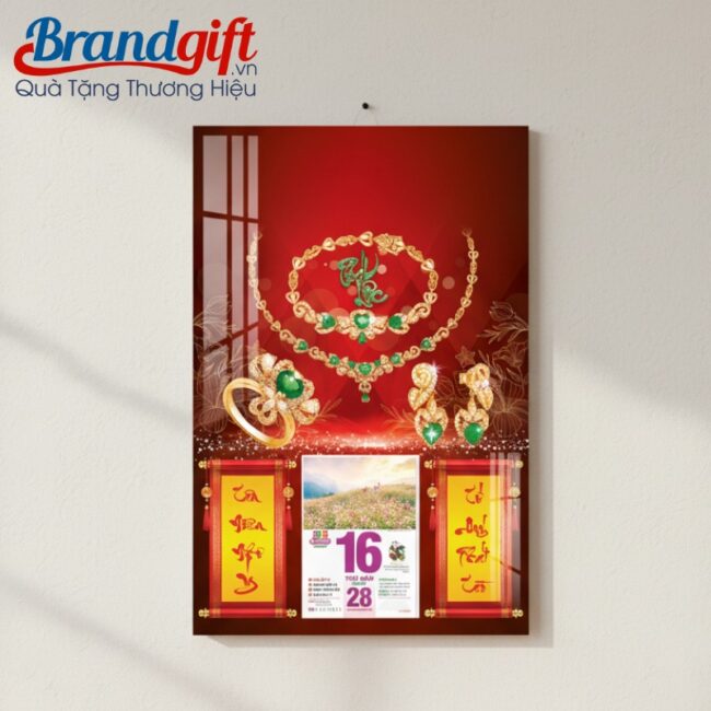 Bộ lịch Tết treo tường chủ đề trang sức là món quà tri ân đẳng cấp, giúp nâng tầm hình ảnh thương hiệu của tiệm vàng và mang những lời chúc may mắn, tài lộc đến mọi gia đình khách hàng trong dịp Tết đến Xuân về.