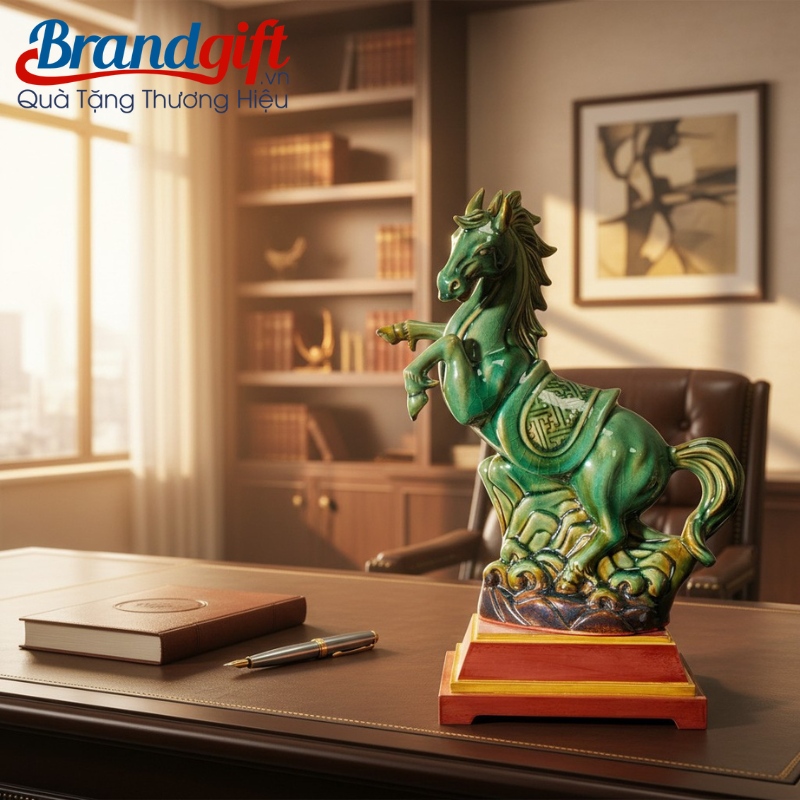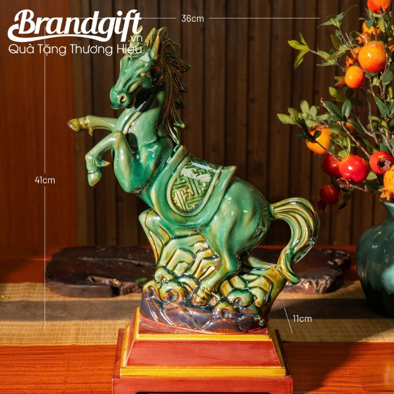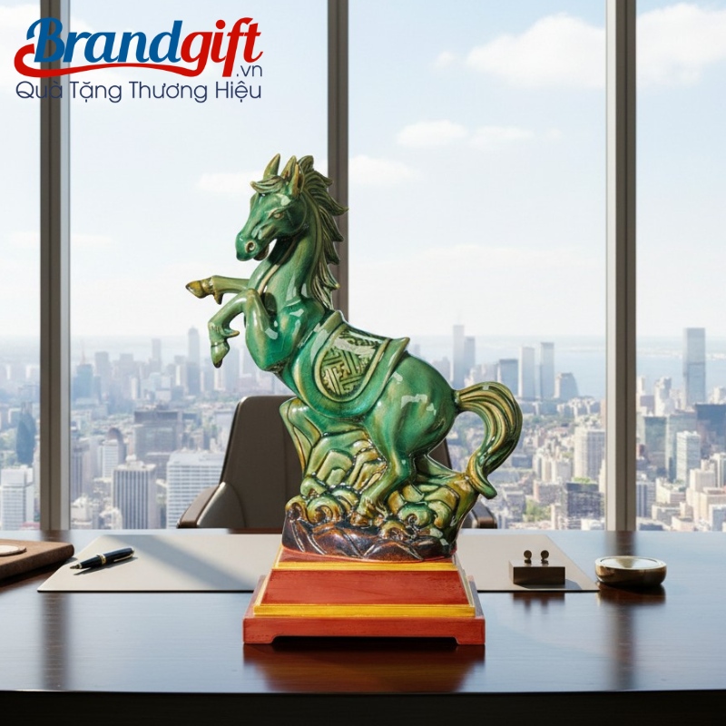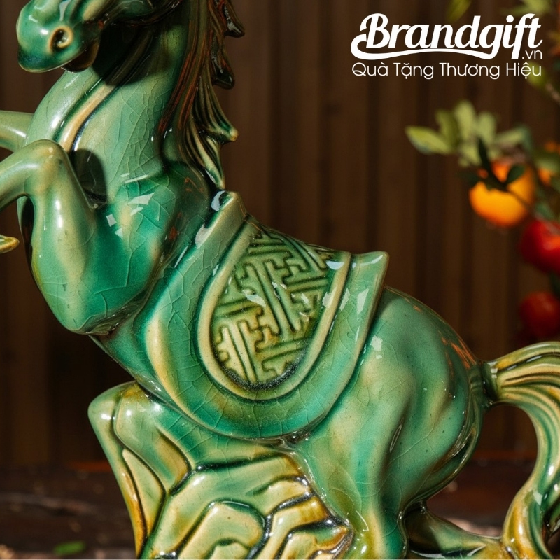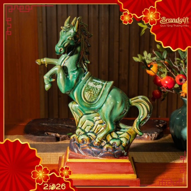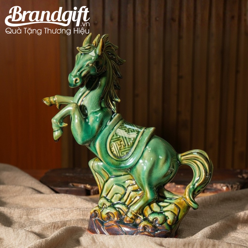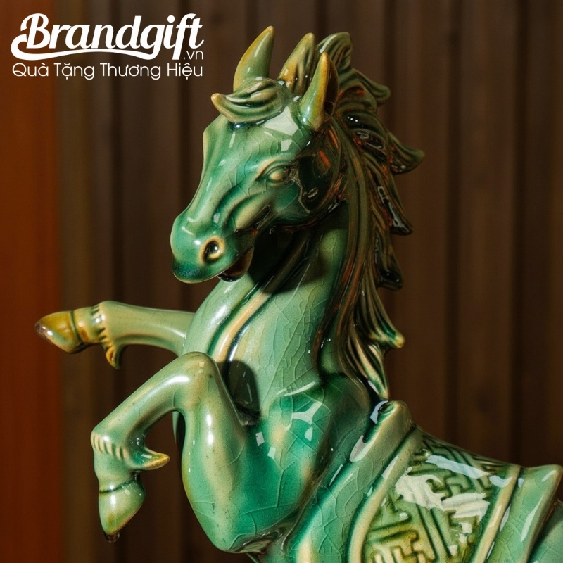 - Sắc men xanh lục bảo sâu thẳm hòa quyện cùng những ánh nâu vàng ở các chi tiết bờm, đuôi và chân ngựa, tạo nên một tổng thể màu sắc vừa vương giả, vừa ấm áp, tượng trưng cho sự sinh sôi, phát triển và tài lộc dồi dào. Màu men xanh lục đặc biệt hợp phong thủy với người mệnh Mộc, mệnh Hỏa hoặc làm quà tặng trong năm Bính Ngọ 2026, mang lại cát khí tốt lành cho gia chủ.