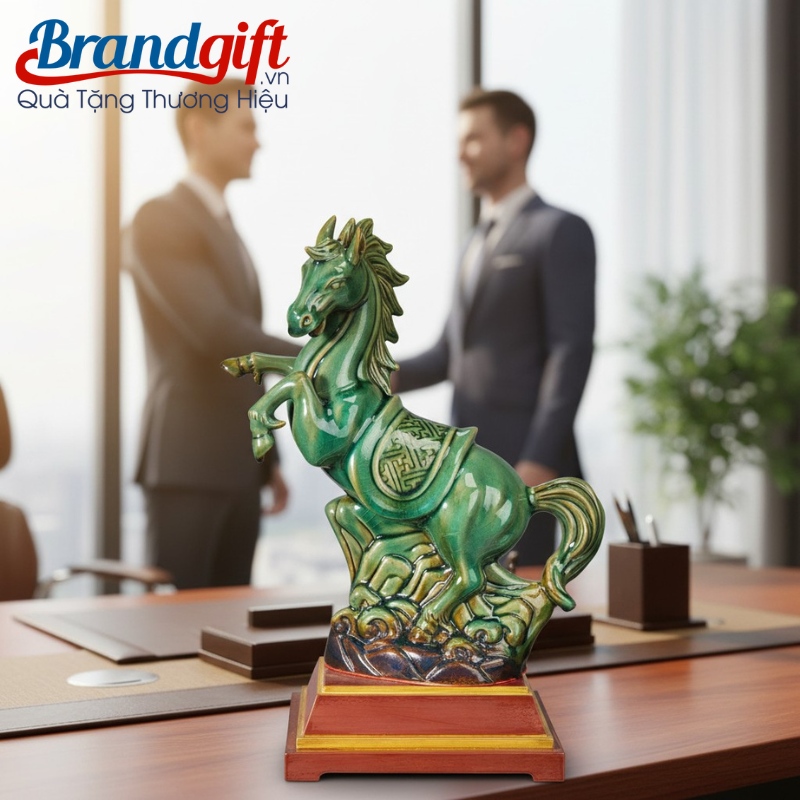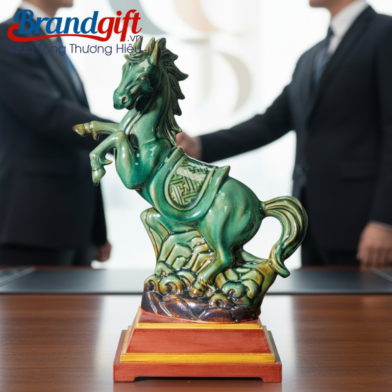 Tượng lục mã cát tường men rạn làm quà Tết Bính Ngọ 2026 TLV-02 là vật phẩm phong thủy cao cấp, mang vẻ đẹp cổ kính và đầy uy lực. Sự kết hợp giữa kỹ thuật chế tác men rạn độc đáo và sắc xanh lục bảo thịnh vượng biến bức tượng linh vật quà tặng này thành biểu tượng của sự vững vàng, kiên cường và tinh thần chinh phục.