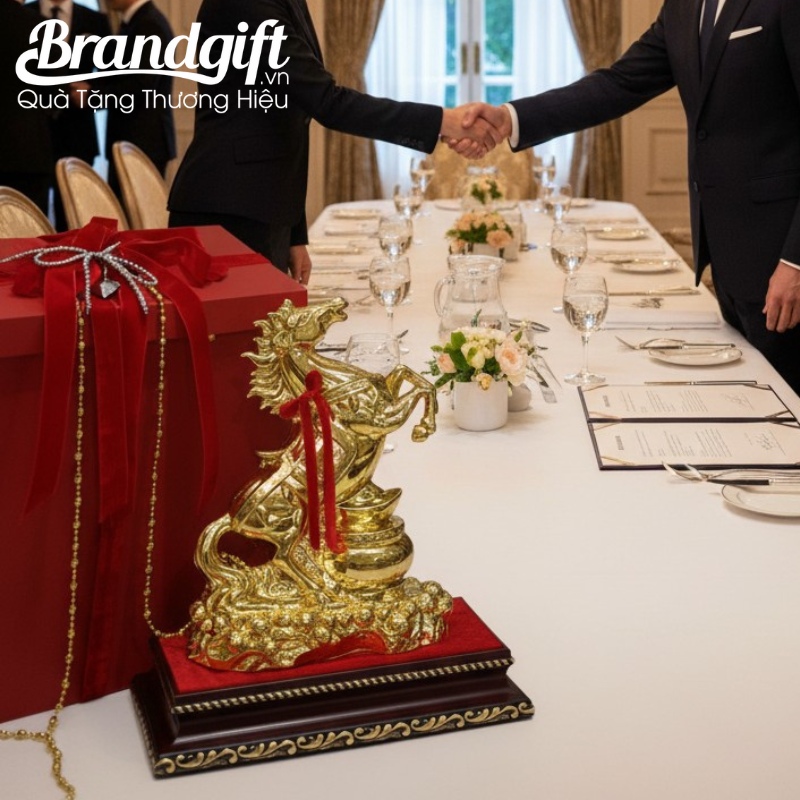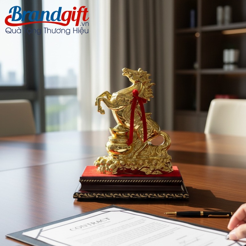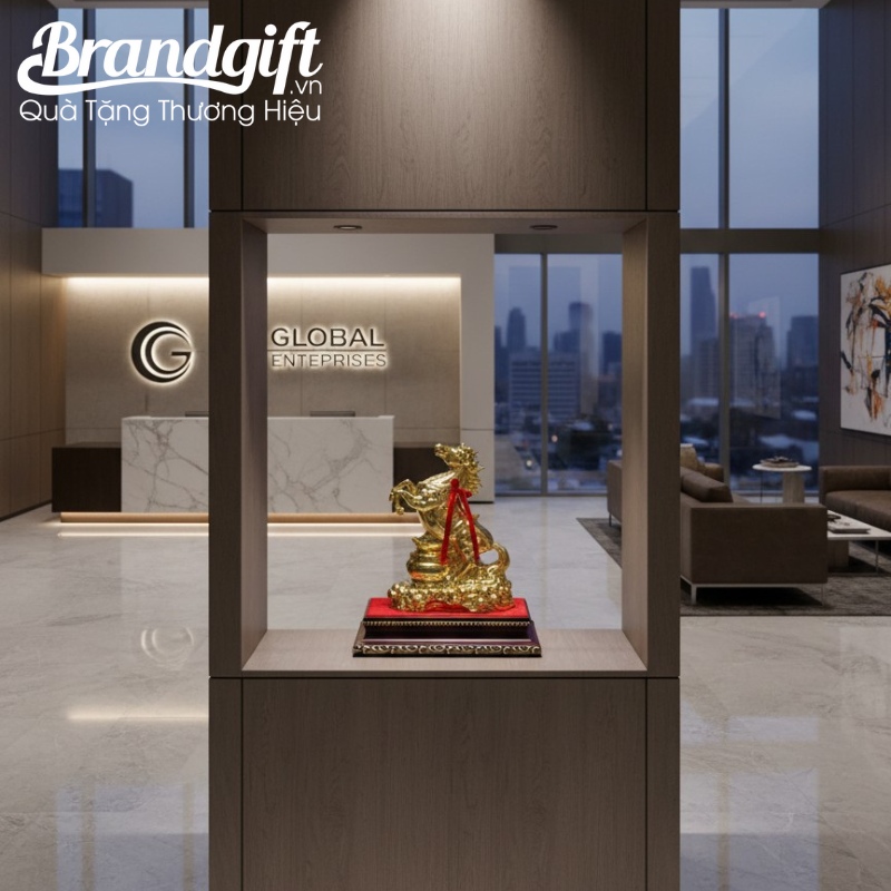 Mẫu tượng linh vật khắc logo này là món quà khẳng định địa vị và sự tôn trọng dành cho các nhà lãnh đạo và đối tác chiến lược. BrandGift hoàn thiện món quà bằng dịch vụ khắc logo lên đế gỗ và phụ kiện nơ đỏ sang trọng, biến tặng phẩm thành một biểu tượng mang đậm bản sắc riêng.