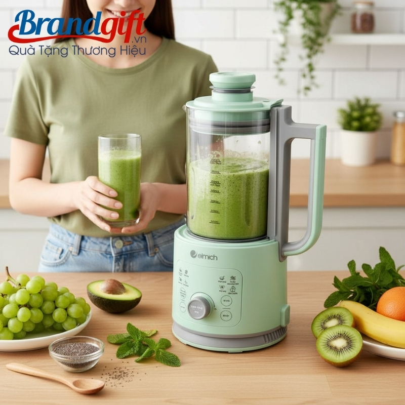Máy xay nấu đa năng Elmich in logo quà tặng màu xanh mint 800ml MXST-04 là giải pháp quà tặng điện gia dụng tiên tiến, định hình phong cách sống hiện đại cho người nhận. Sản phẩm gây ấn tượng mạnh mẽ nhờ khả năng tích hợp xay – nấu trong một, có khả năng tự động chế biến từ những ly sữa hạt bổ dưỡng, sinh tố mát lạnh đến những món súp nóng hổi.