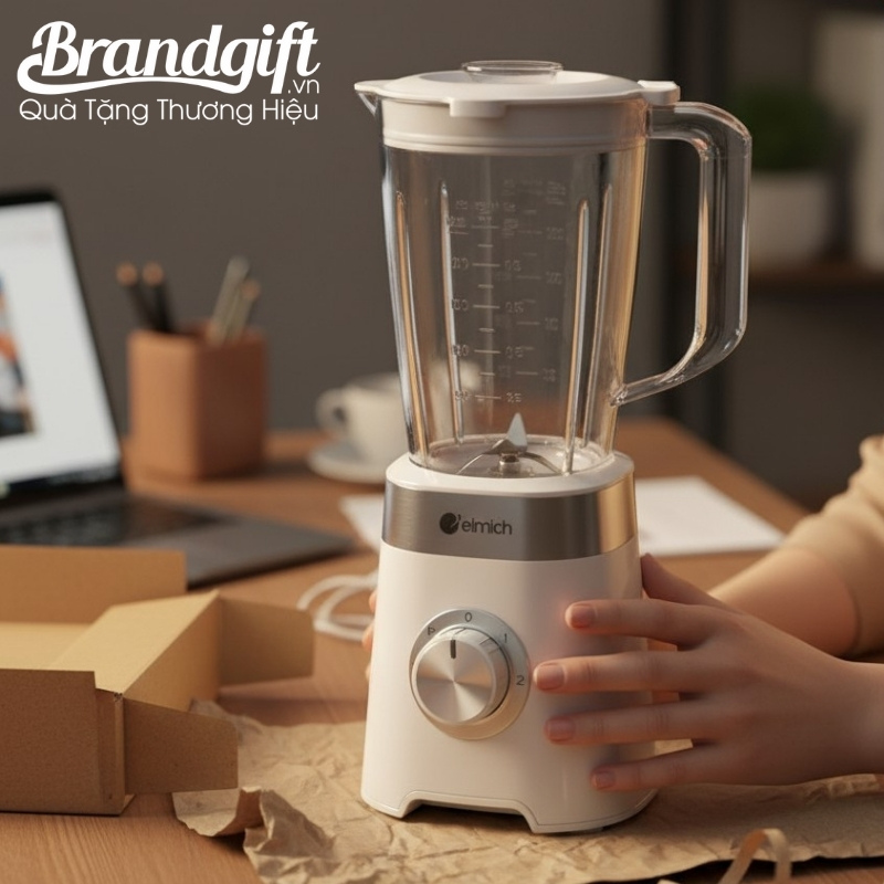 - BrandGift cung cấp dòng máy sinh tố quà tặng đến từ thương hiệu Elmich chính hãng, đáp ứng các tiêu chuẩn khắt khe về an toàn kỹ thuật, giúp doanh nghiệp yên tâm tuyệt đối khi trao tặng.