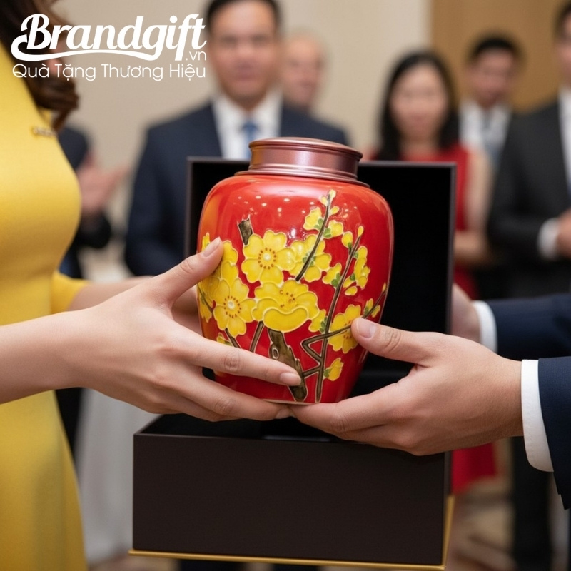 Quý doanh nghiệp vui lòng liên hệ với Quà Tặng BrandGift qua Hotline 0945 998 009 để được tư vấn cụ thể về các mẫu hũ trà gốm sứ cao cấp mà bạn đang quan tâm.