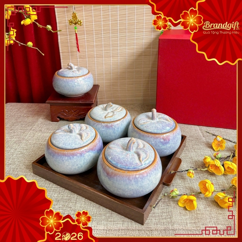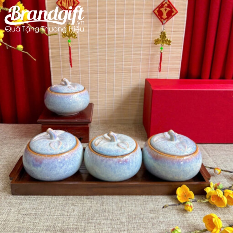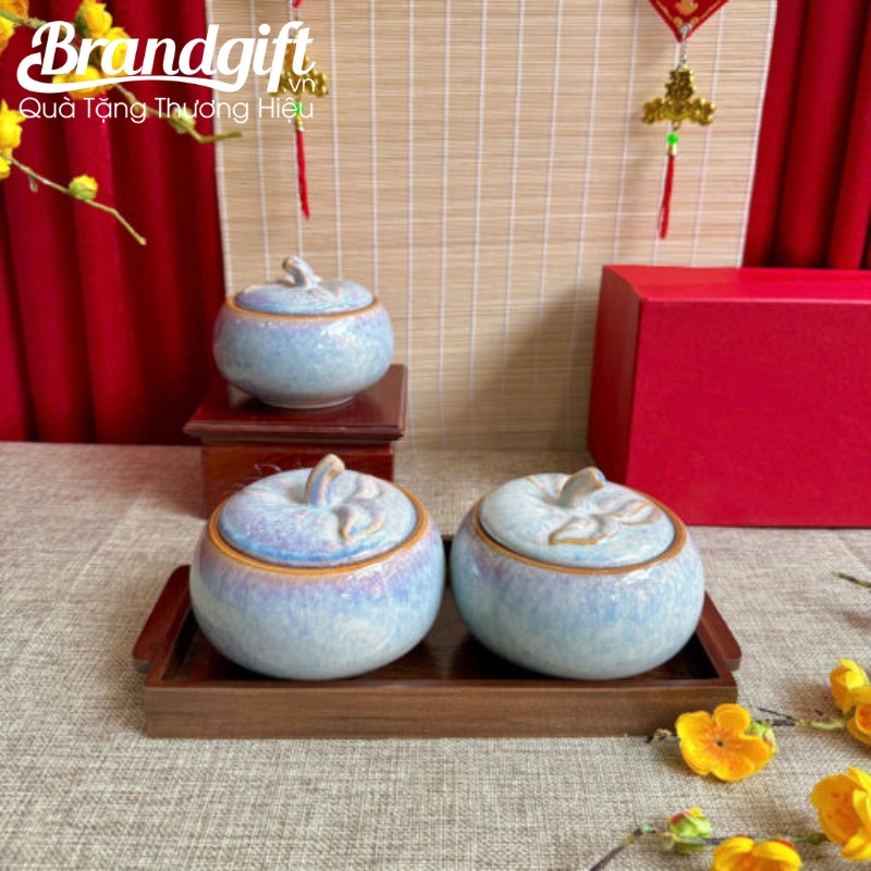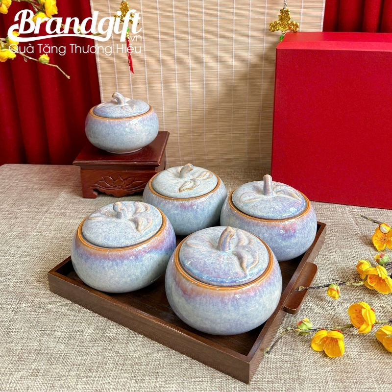 - Để tạo nên một set quà hoàn hảo, quý doanh nghiệp có thể tùy chọn kết hợp bộ 2, bộ 3 hoặc 5 hũ sứ với khay gỗ chuyên dụng đi kèm, mang lại vẻ ngoài chuyên nghiệp và cao cấp khi trao tặng.