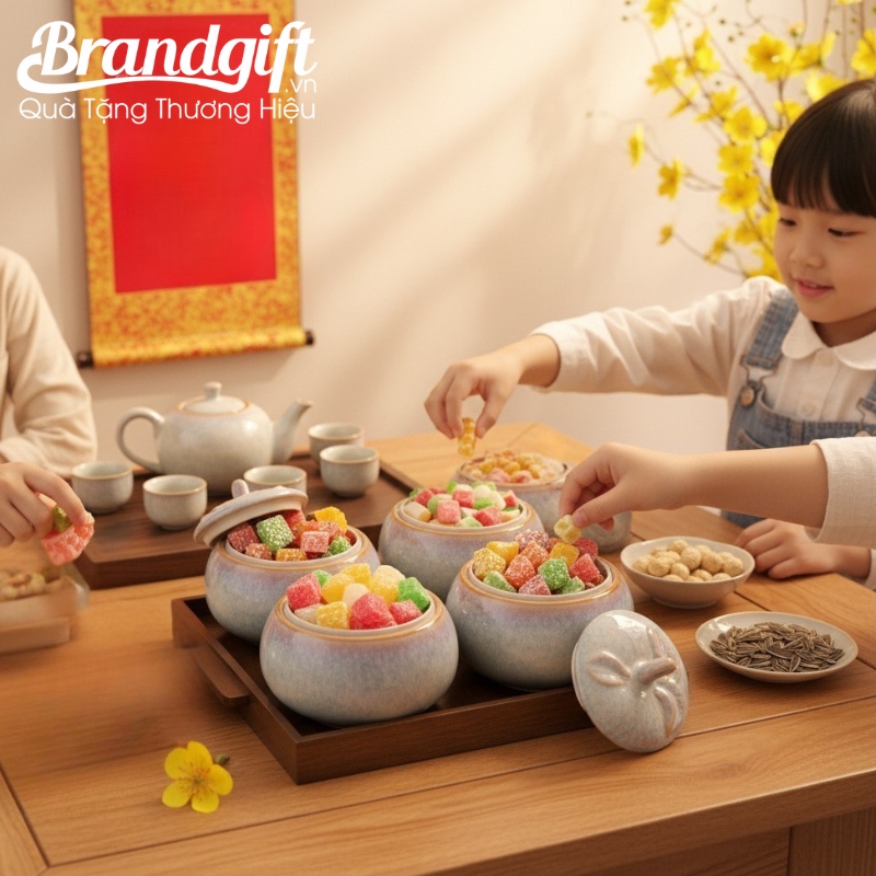 Tất cả sản phẩm tại Brandgift đều được tuyển chọn kỹ lưỡng và không qua trung gian nên luôn có giá thành cạnh tranh so với thị trường. Ngoài khay mứt, chúng tôi còn cung cấp các sản phẩm quà tặng gốm sứ khác bao gồm ly, ấm, chén, bình hút lộc, lọ hoa,…