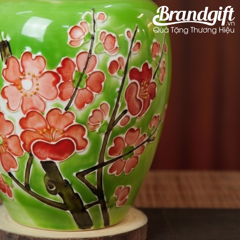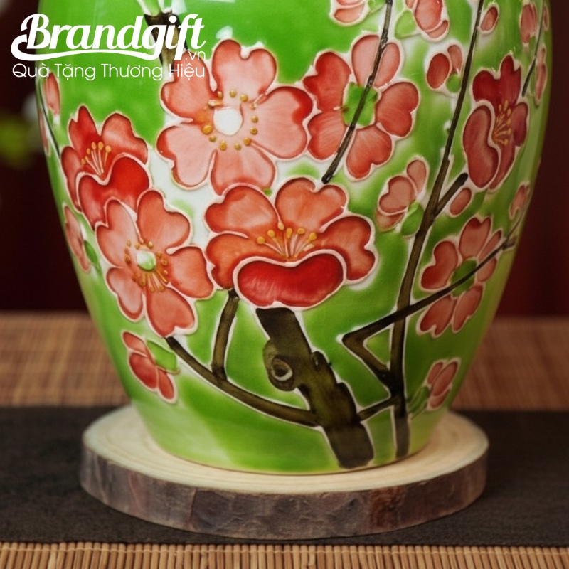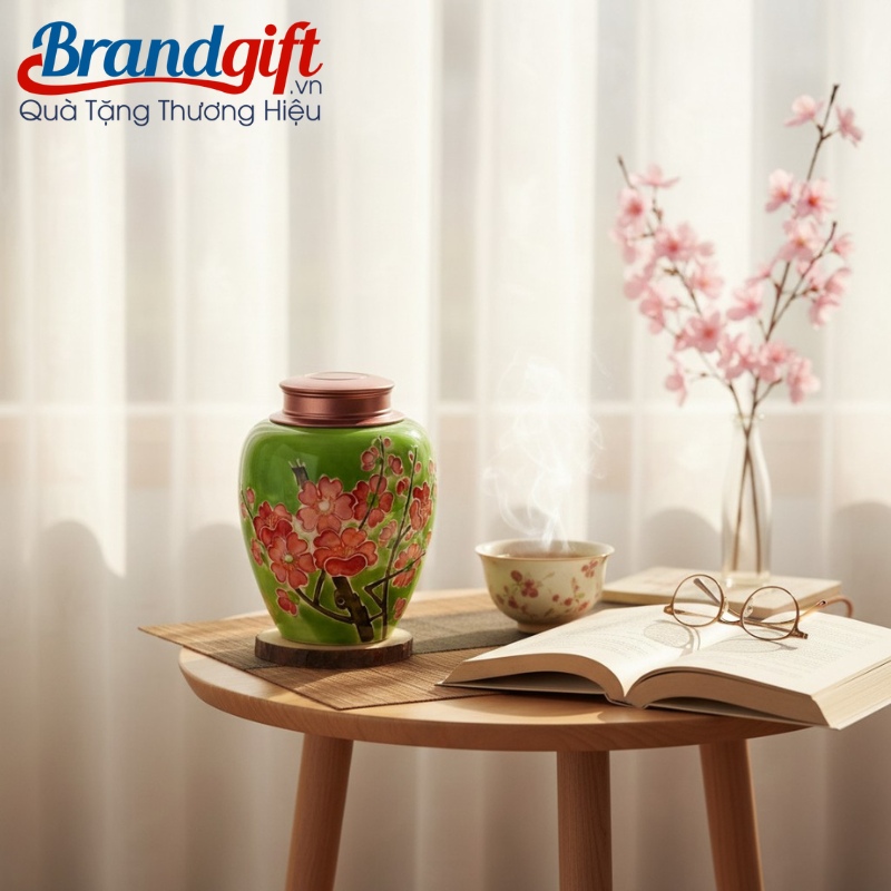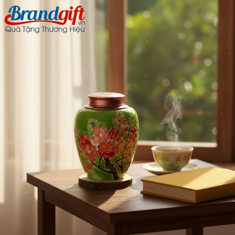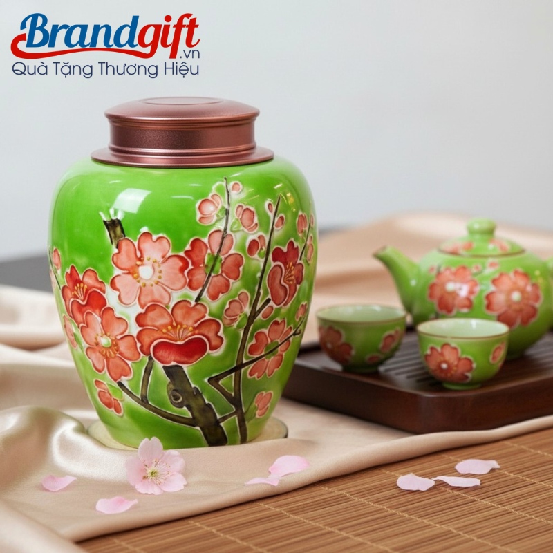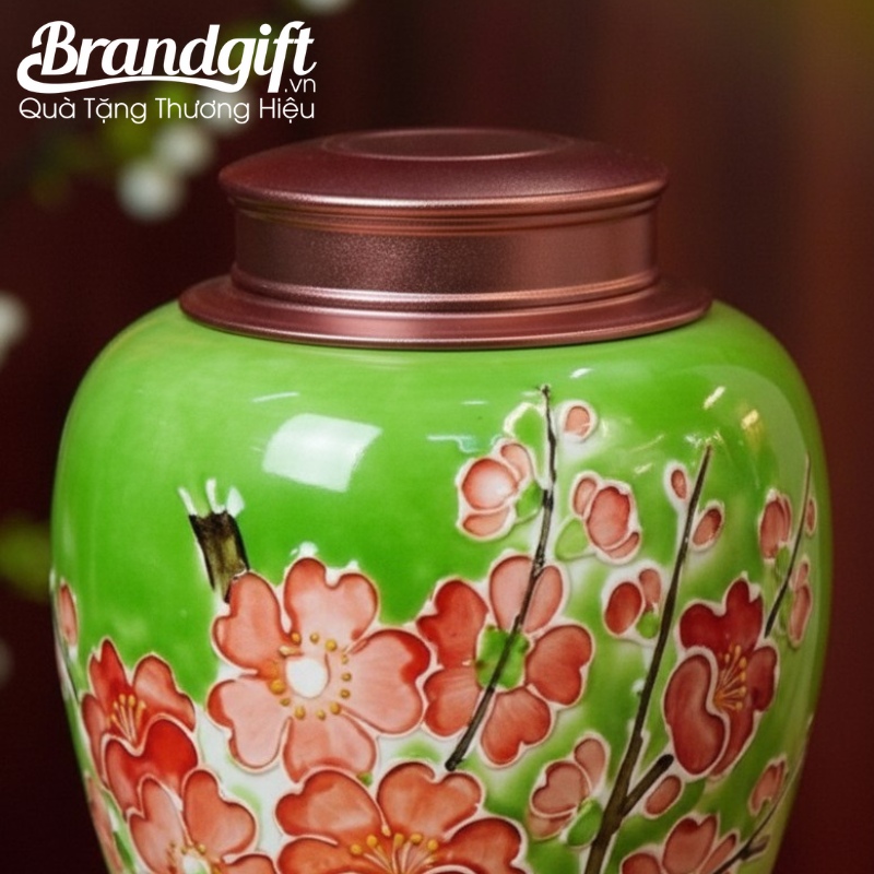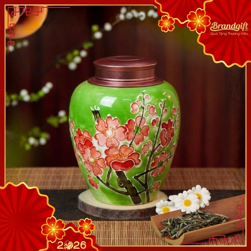Với vẻ đẹp rực rỡ và thông điệp tích cực, mẫu lọ chè Bát Tràng in logo này là món quà hoàn hảo để doanh nghiệp lan tỏa niềm vui và gửi gắm lời chúc về một năm mới thành công đến các đối tác, khách hàng quan trọng.