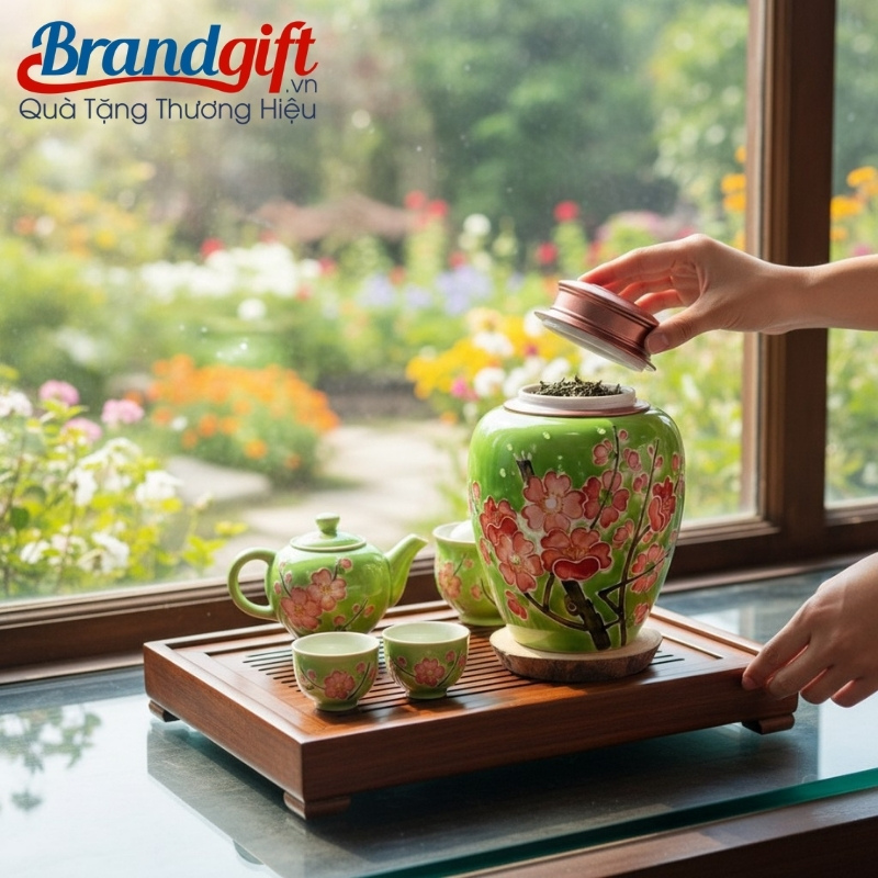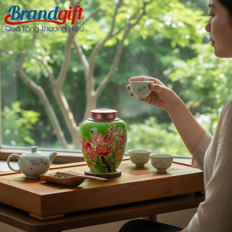 - BrandGift mang đến dịch vụ in decal logo lên hũ đựng trà gốm sứ theo yêu cầu, giúp doanh nghiệp ghi dấu ấn thương hiệu và gửi trao thông điệp tri ân một cách tinh tế.