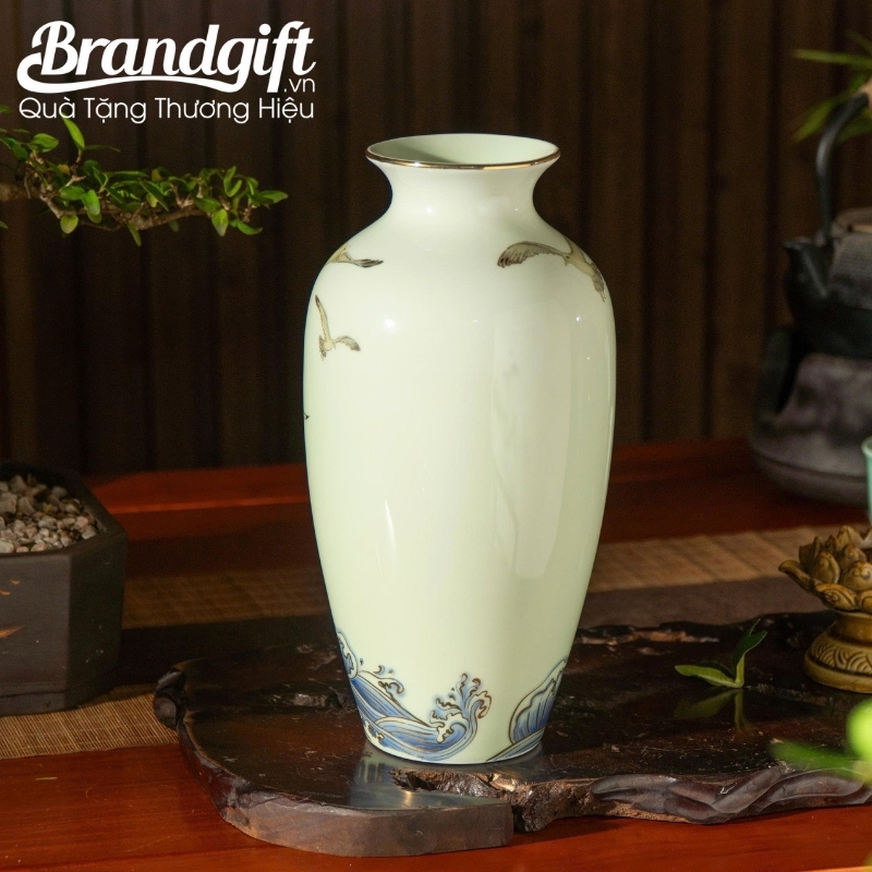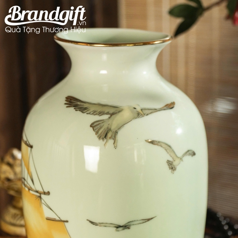 | Tên | Lọ hoa gốm sứ quà tặng men ngọc họa tiết thuyền hải âu vàng kim 28cm | Đặc tính | An toàn cho sức khỏe, thân thiện với môi trường |
