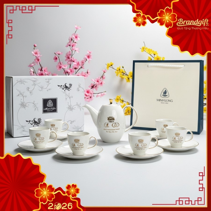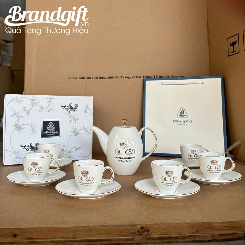 Bộ trà in logo làm quà tặng thể hiện sự tinh tế và đẳng cấp của doanh nghiệp. Brandgift kết hợp cùng hộp quà sang trọng, bộ ấm chén sẽ là đại sứ thương hiệu hoàn hảo, nâng tầm vị thế công ty bạn.