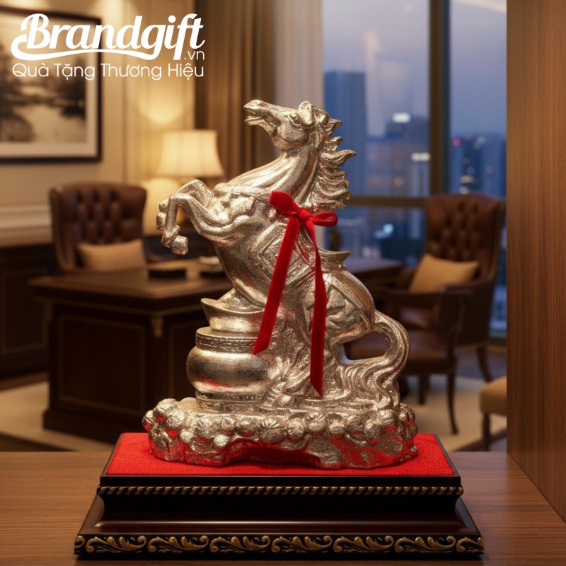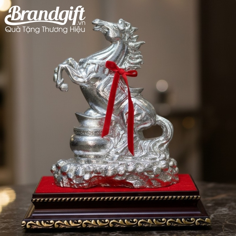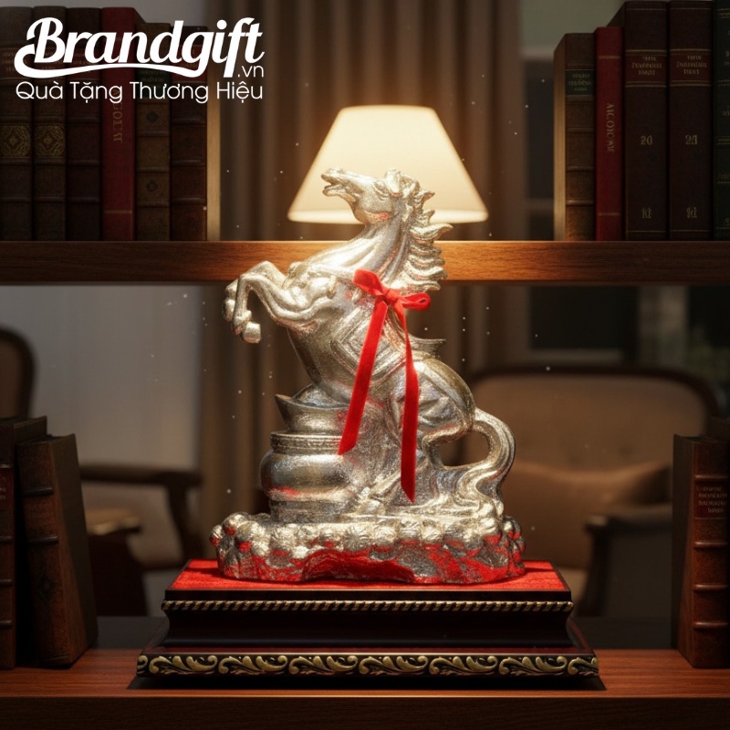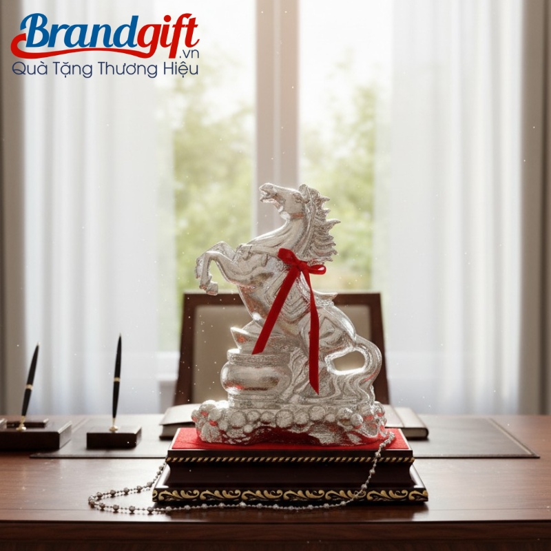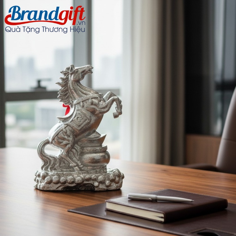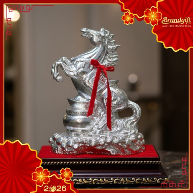 Mẫu tượng linh vật gốm sứ khắc logo này là tặng phẩm cao cấp, xứng tầm để gửi tặng đến các đối tác chiến lược, lãnh đạo cấp cao nhân lễ Tết Bính Ngọ 2026. BrandGift hoàn thiện món quà bằng dịch vụ khắc logo lên đế gỗ và phụ kiện nơ đỏ, tạo nên tổng thể đối lập cuốn hút, khẳng định gu thẩm mỹ khác biệt của người tặng.