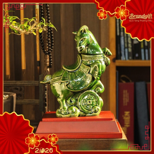 Tượng ngựa tài lộc bích ngọc in logo quà tặng Tết Bính Ngọ 2026 TLV-06 là món quà Tết cap cấp mang ý nghĩa phong thủy sâu sắc, hội tụ nguồn năng lượng của sự thịnh vượng, phú quý và tài lộc vững bền.