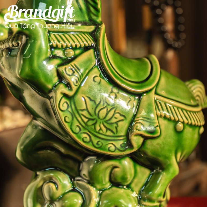 - Tượng được chế tác thủ công từ gốm sứ Bát Tràng tuyển chọn, trải qua quá trình nung nhiệt độ cao 1200 độ C để tạo nên độ bền vĩnh cửu. Từng chi tiết từ yên cương, bờm, đến các đường nét trên thân ngựa đều được chạm nổi tinh xảo, thể hiện một khí thế uy phong nhưng không kém phần điềm tĩnh, an nhiên.