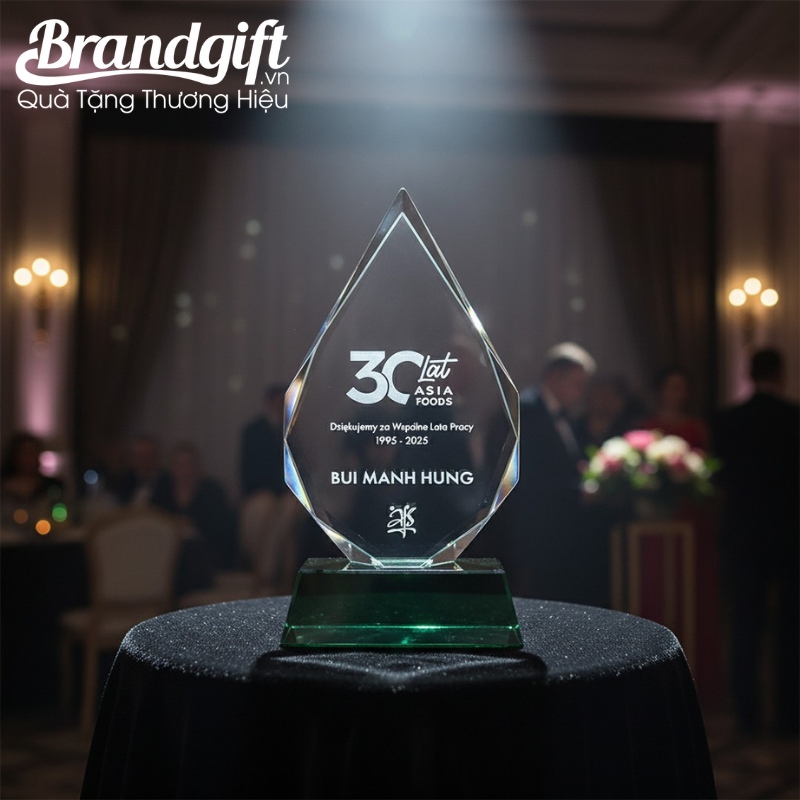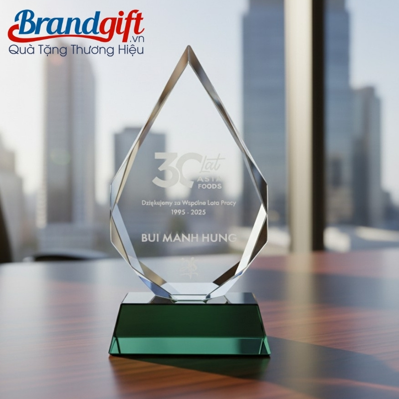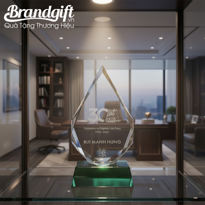 Khi được khắc ghi tên cá nhân, logo và thông điệp ý nghĩa, chiếc biểu trưng pha lê quà tặng trở thành lời tri ân sâu sắc nhất mà doanh nghiệp dành cho những nhân sự tận tâm. Đây không chỉ là sự ghi nhận thành tích, mà còn là nguồn động lực quý giá, tiếp thêm sức mạnh để ngọn lửa đam mê ấy tiếp tục tỏa sáng và dẫn lối đến những thành công lớn hơn trong tương lai.
