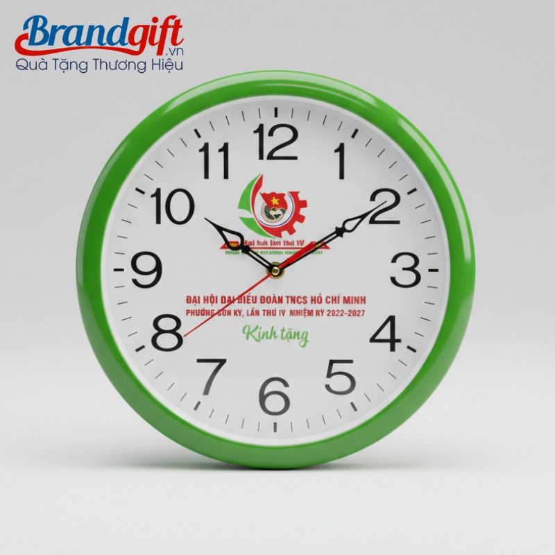 Sản phẩm được thiết kế với đa dạng phong cách từ mặt tròn cổ điển đến mặt vuông hiện đại, sử dụng chất liệu nhựa ABS cao cấp hoặc khung gỗ bền bỉ. Quà tặng Brandgift cung cấp các dòng đồng hồ kim trôi êm ái, không gây tiếng ồn, đảm bảo sự tĩnh lặng cho không gian nghỉ ngơi hoặc tập trung làm việc. Logo Đoàn TNCS Hồ Chí Minh và thông điệp kỷ niệm được in kỹ thuật số sắc nét trên mặt số, tạo điểm nhấn nhận diện thương hiệu mạnh mẽ và tinh tế.