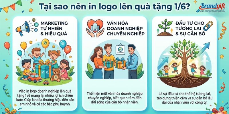 Việc in logo doanh nghiệp lên quà tặng 1/6 mang lại nhiều lợi ích chiến lược.