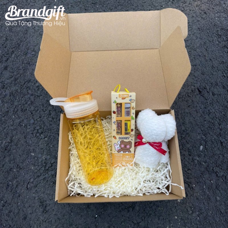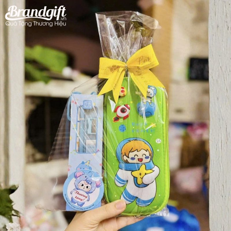 Các set quà này có thể được tùy chỉnh theo ngân sách và độ tuổi của các bé, ví dụ như set dụng cụ học tập (bút, thước, tẩy), set đồ dùng cá nhân (bình nước, khăn mặt), hoặc set đồ chơi sáng tạo.