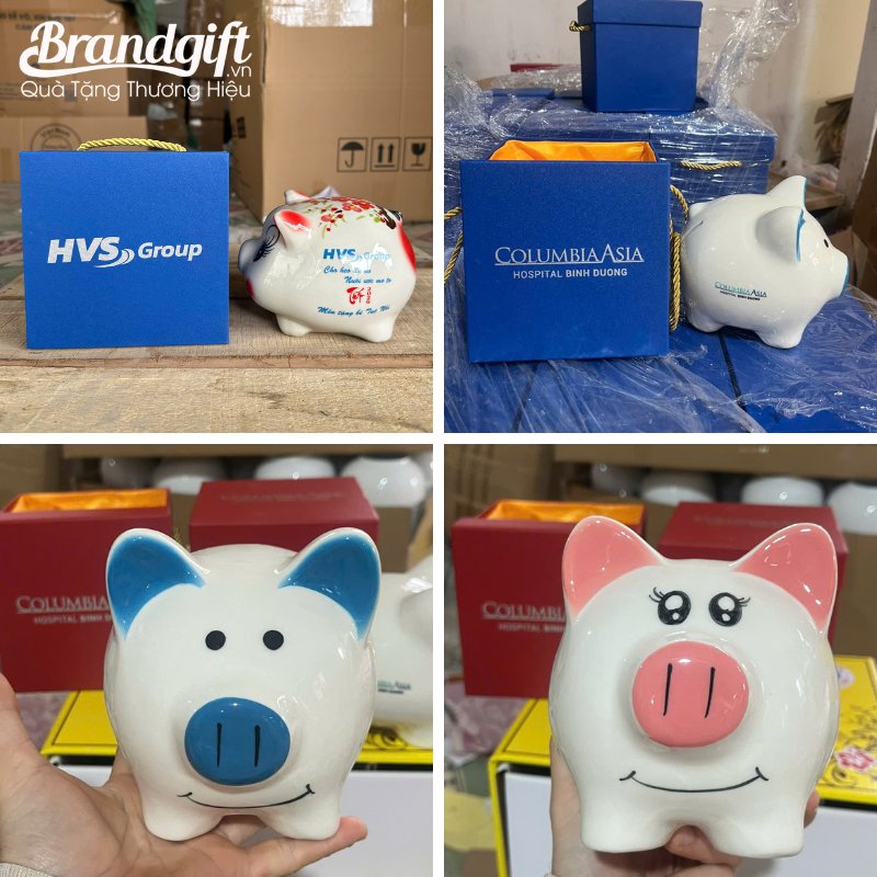 Các mẫu heo đất hiện nay rất đa dạng về hình dáng và màu sắc. Doanh nghiệp có thể in logo của mình lên thân heo đất, gửi gắm thông điệp về sự vun đắp cho tương lai, đồng hành cùng sự phát triển của thế hệ mầm non.
