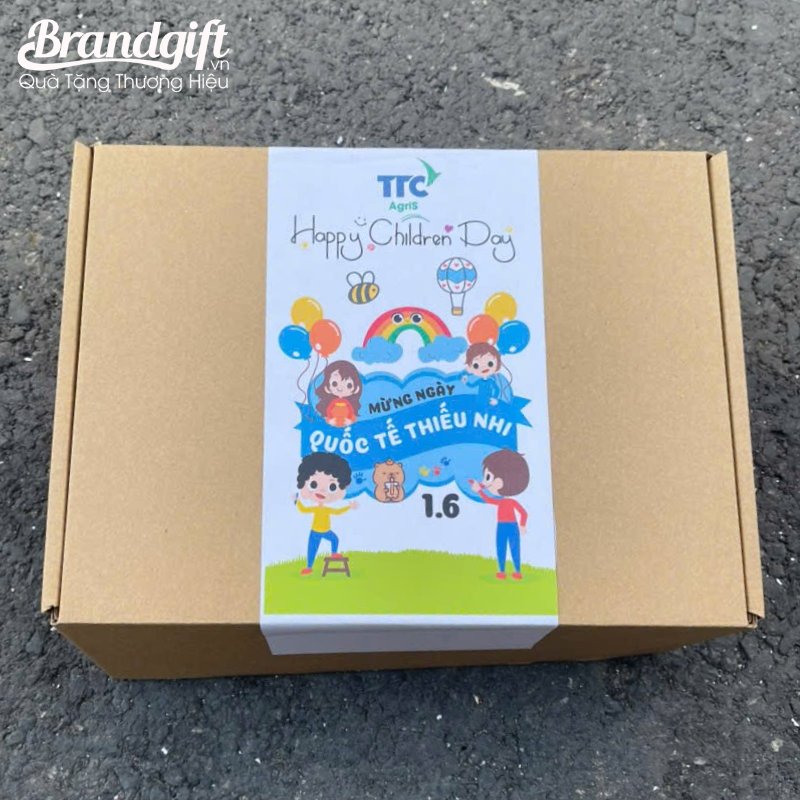 - Yếu tố nhận diện thương hiện: In logo lên quà tặng là cần thiết nhưng cần sự khéo léo. Logo không nên quá to hoặc chiếm hết diện tích, làm mất đi vẻ đẹp của món quà. Có thể đi kèm một thông điệp ngắn gọn, ý nghĩa như “Chúc bé chăm ngoan, học giỏi!” hay “Vui Tết Thiếu nhi 1/6”.