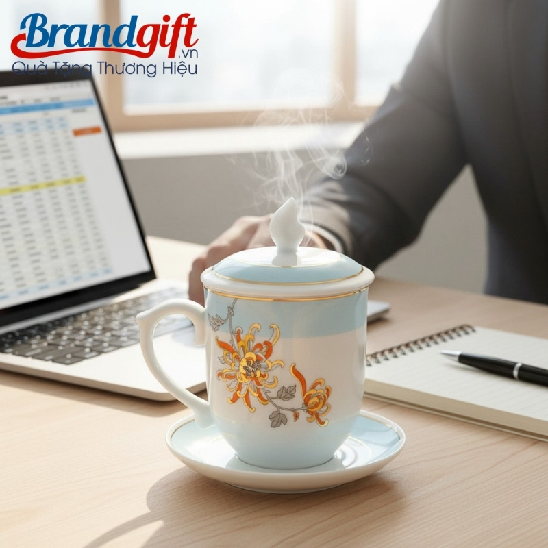Với thiết kế đồng bộ gồm cốc, nắp đậy và đĩa lót, tặng phẩm không chỉ tối ưu công năng sử dụng mà còn mang đến một trải nghiệm thưởng trà trọn vẹn, đậm phong cách quý tộc, qua đó tôn vinh gu thẩm mỹ tinh tế của người sở hữu.