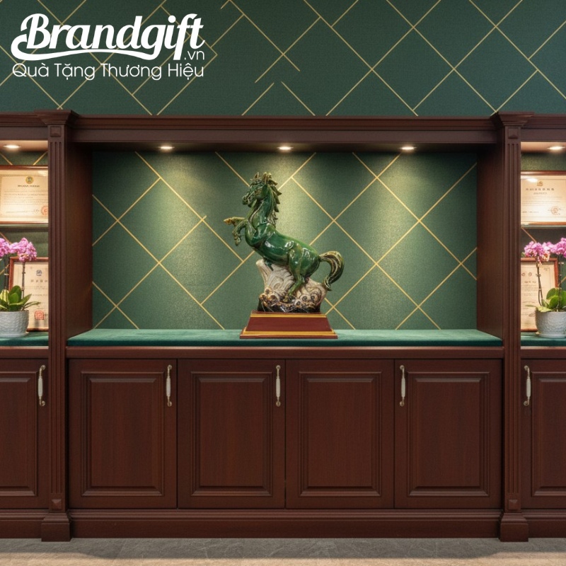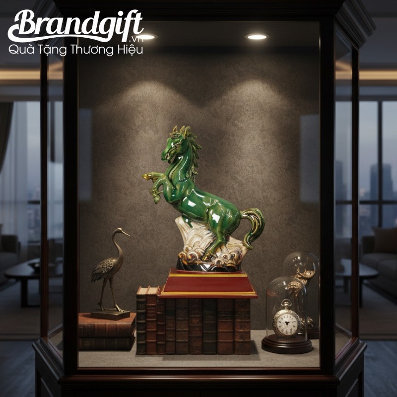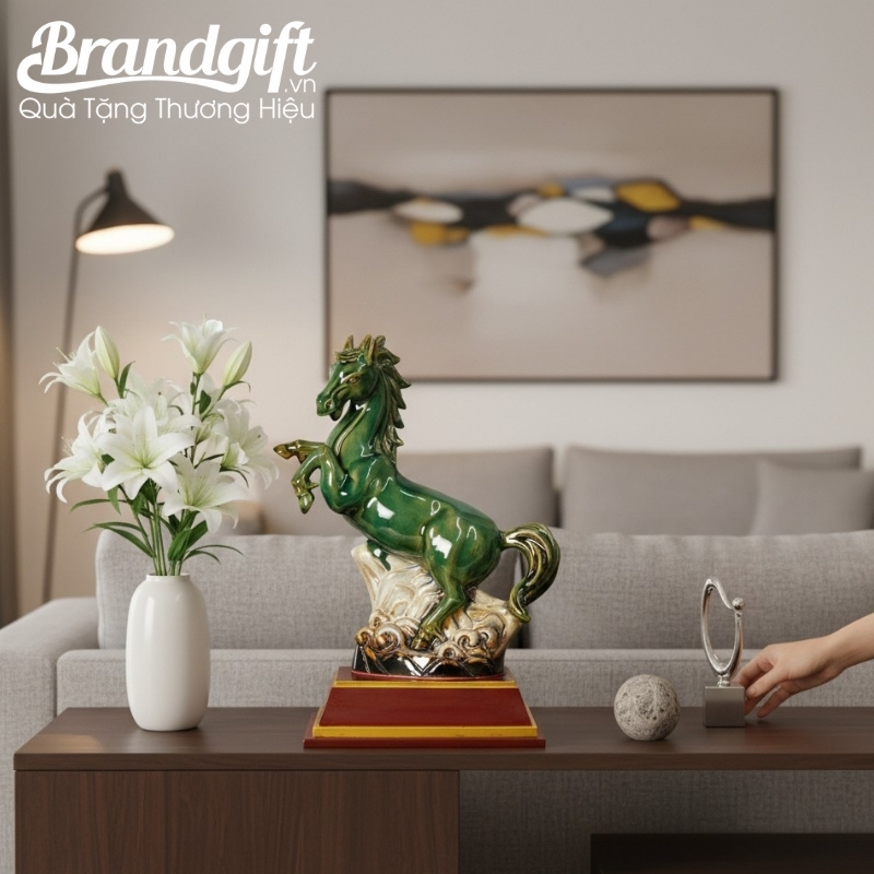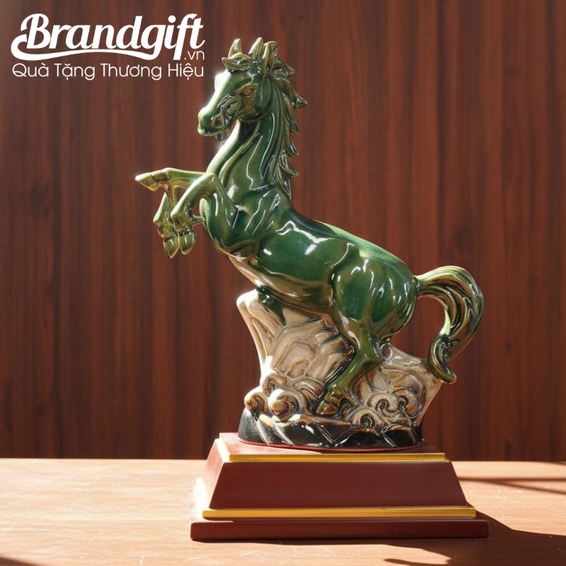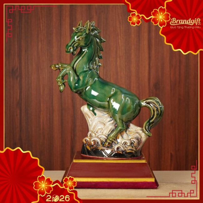 Hình tượng ngựa phi nước đại tượng trưng cho sự thăng tiến không ngừng, là lời chúc “Mã Đáo Thành Công” đầy uy lực. Mẫu tượng linh vật gốm sứ quà tặng này là lựa chọn lý tưởng để doanh nghiệp gửi gắm thông điệp về sự phát triển bền vững và vững chãi đến đối tác chiến lược.