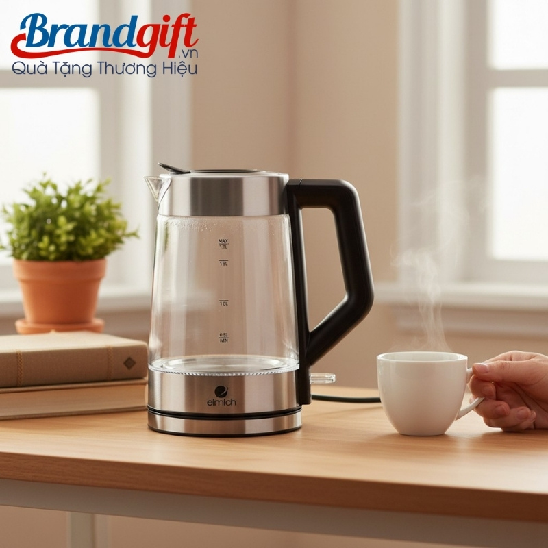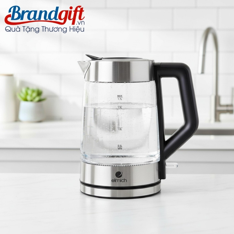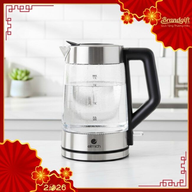 Ấm đun nước siêu tốc thủy tinh quà tặng thương hiệu Elmich 1700ml AST-04 là giải pháp quà tặng gia dụng thiết thực đến từ thương hiệu uy tín của Cộng hòa Séc, nổi tiếng với các tiêu chuẩn khắt khe về độ bền và an toàn kỹ thuật.