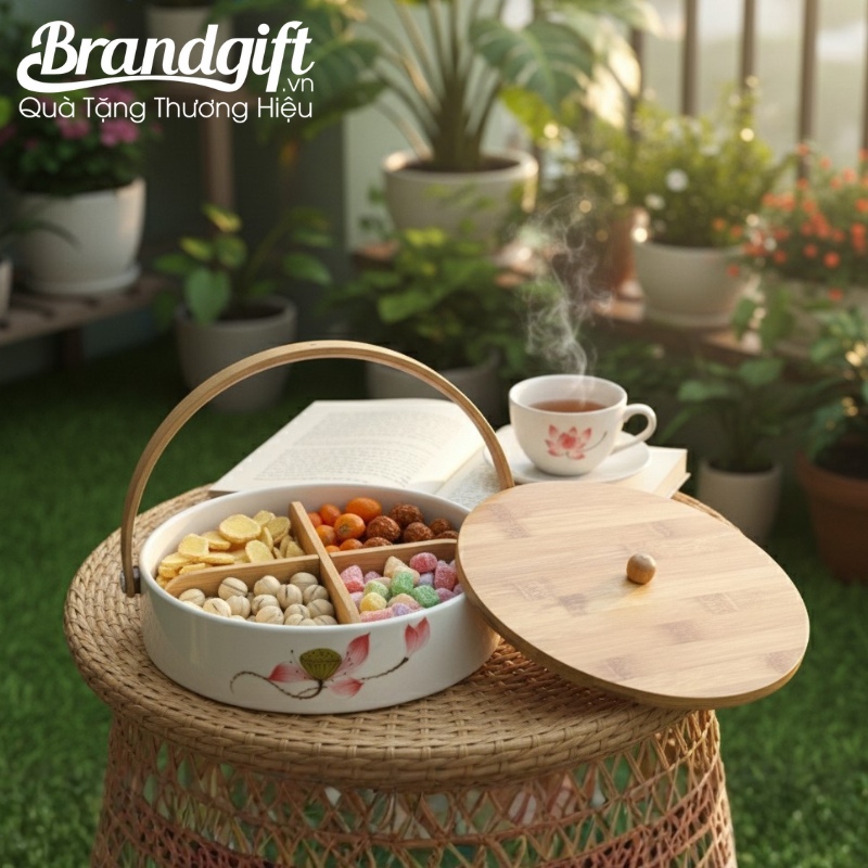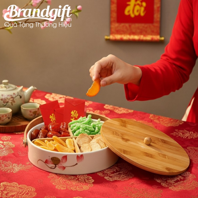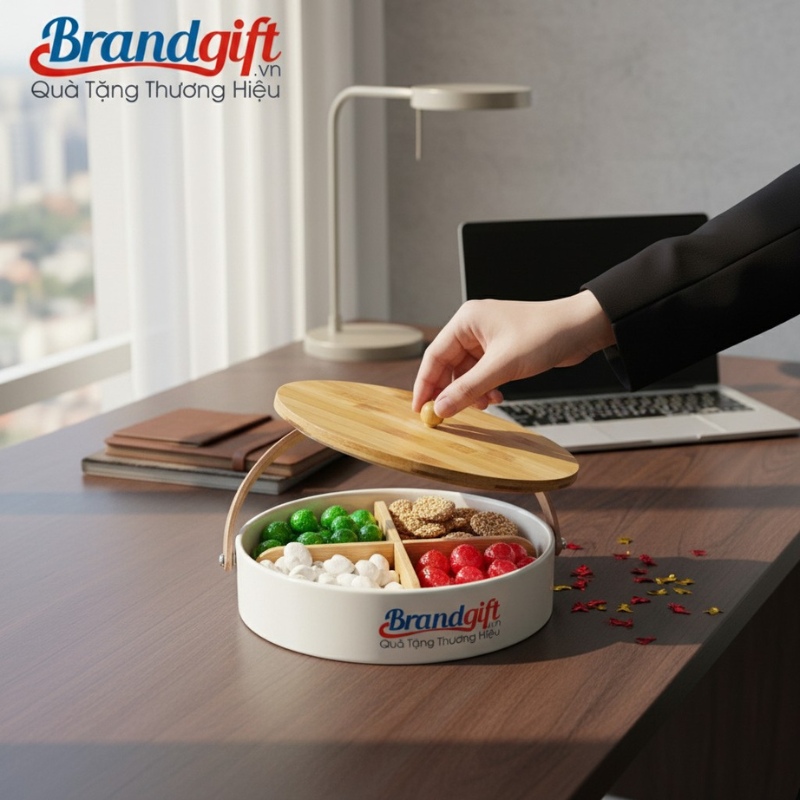 BrandGift chuyên phân phối và cung cấp khay mứt số lượng lớn in logo làm quà tặng Tết