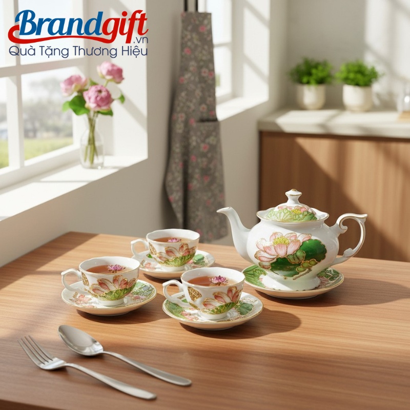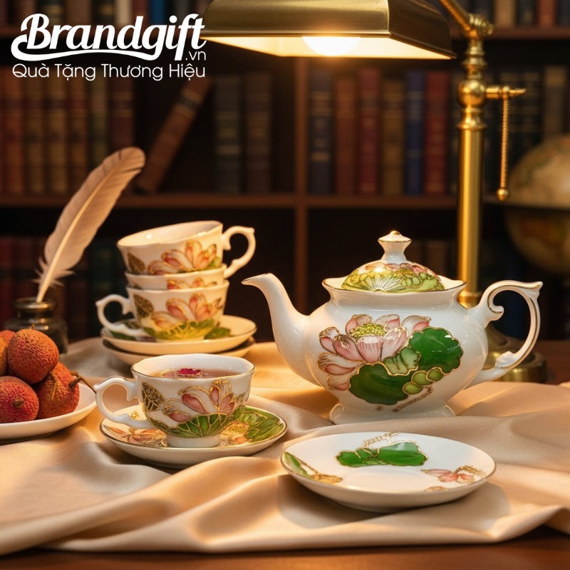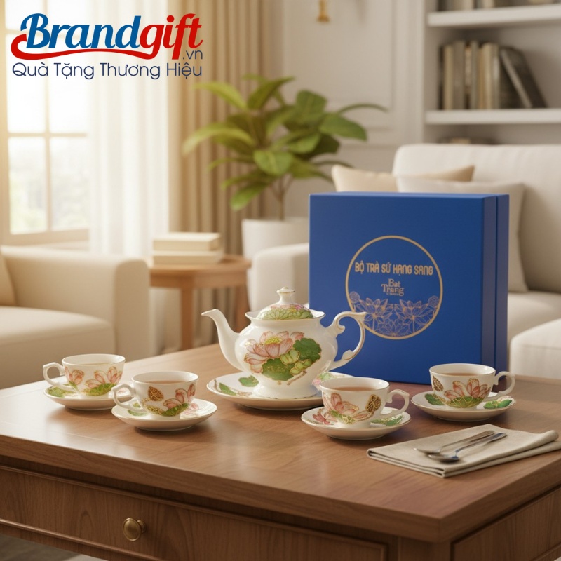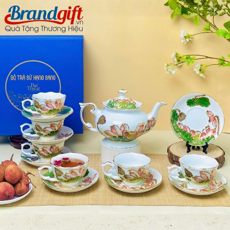 Bộ trà in logo làm quà tặng thể hiện sự tinh tế và đẳng cấp của doanh nghiệp. Brandgift kết hợp cùng hộp quà sang trọng, bộ ấm chén sẽ là đại sứ thương hiệu hoàn hảo, nâng tầm vị thế công ty bạn.